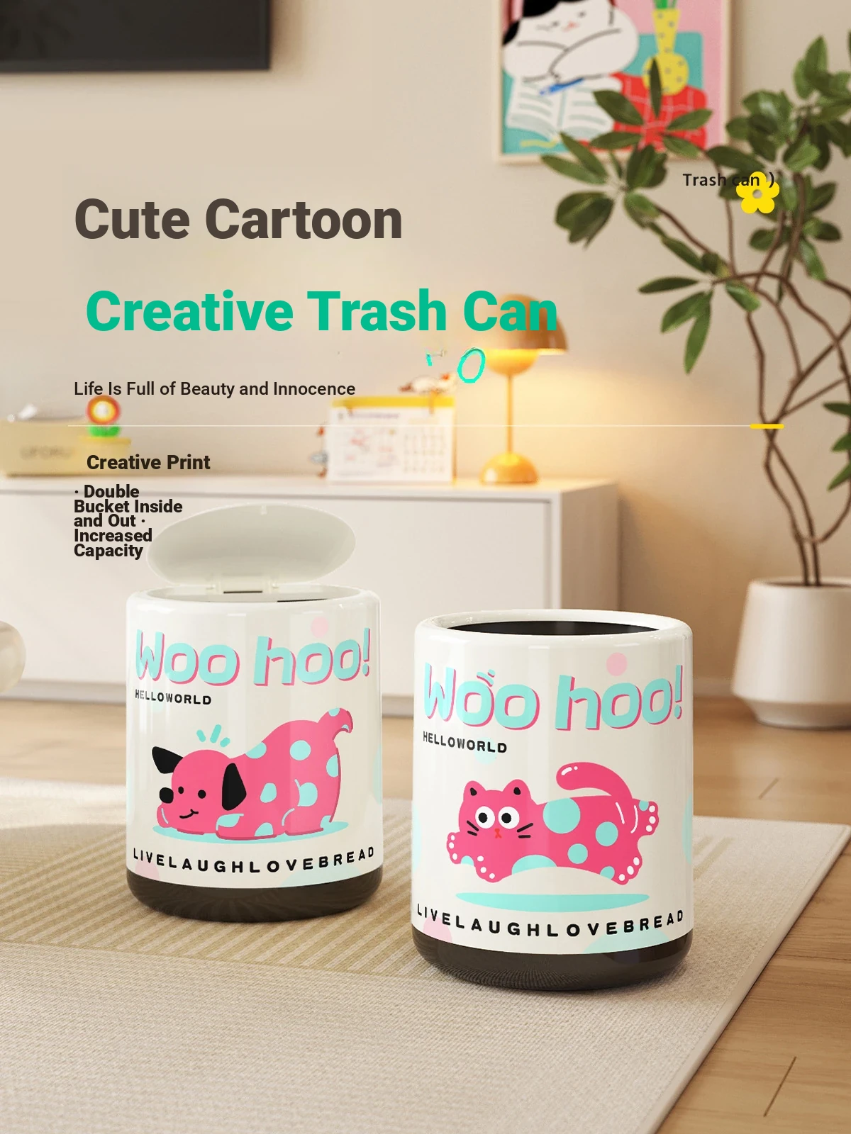 Creative High-Quality Cartoon Cat & Dog Trash Can - Large Capacity with Pop-Up Lid for Home Use, Perfect for Living Room & Bedroom Decor