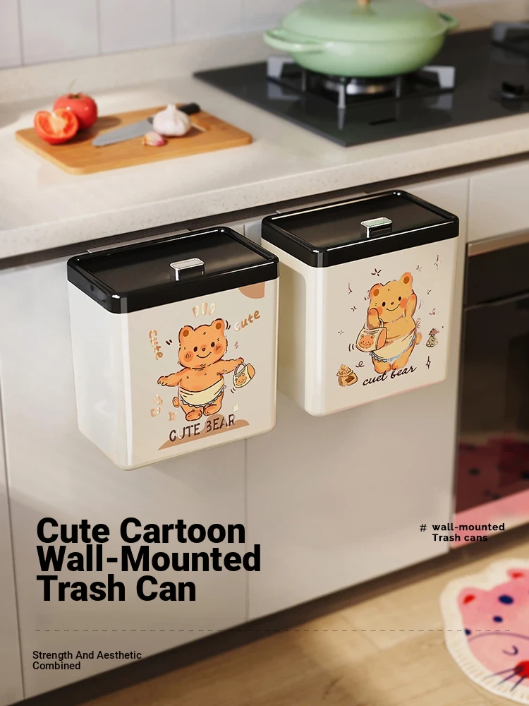 "Meisida Wall-Mounted Kitchen Trash Can - Cute Cartoon Design, Large Capacity, Stylish and Functional Bathroom Bin with Lid"