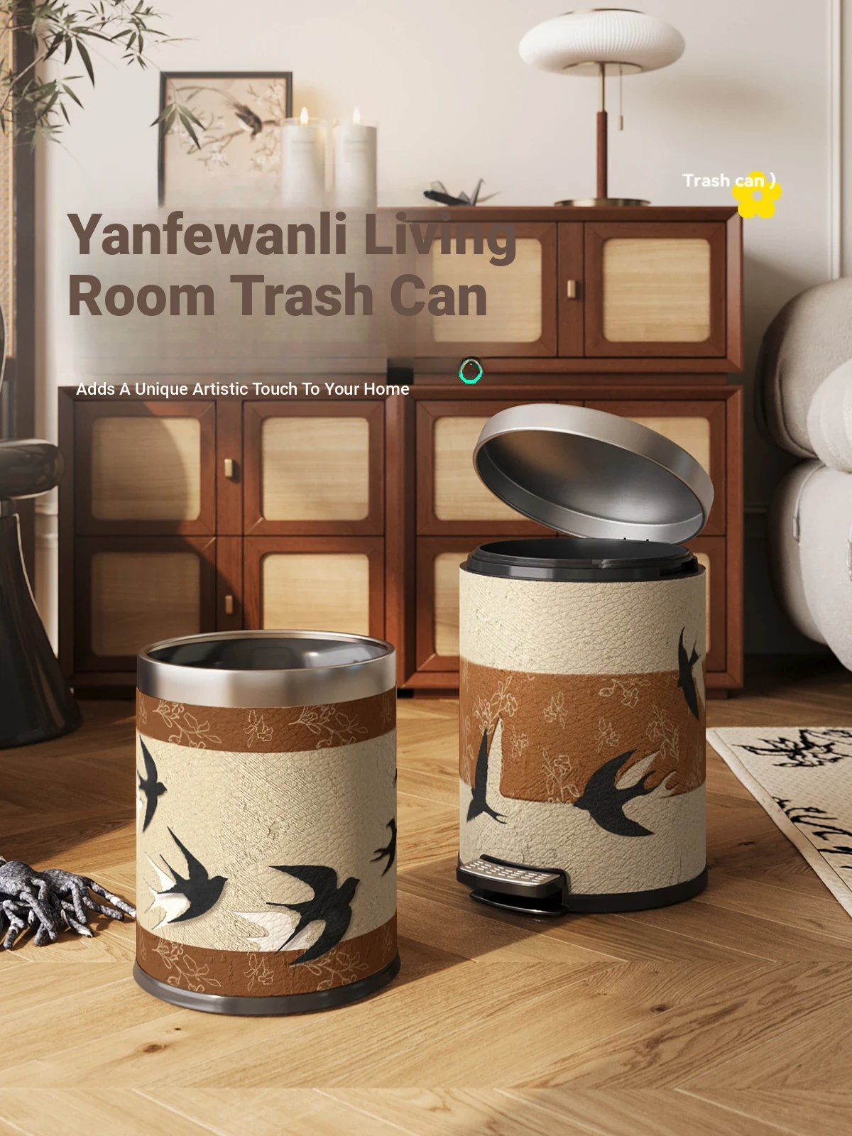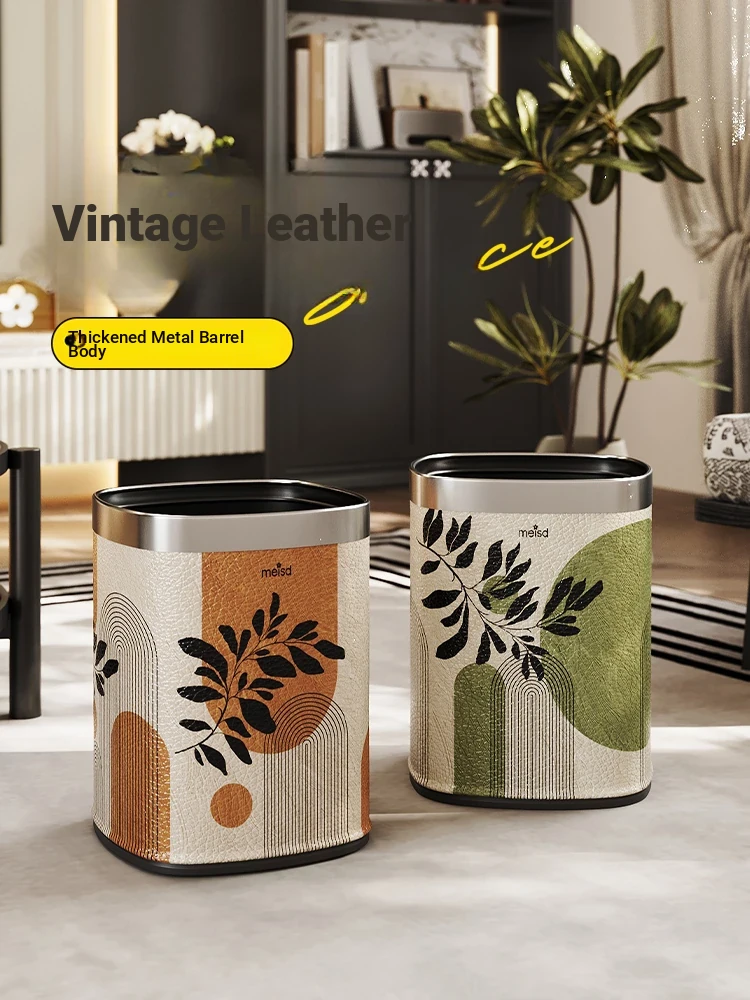 Stylish Vintage Leather Trash Can for Home - Elegant Design for Living Room and Bedroom - Meida Retro Swallow Collection