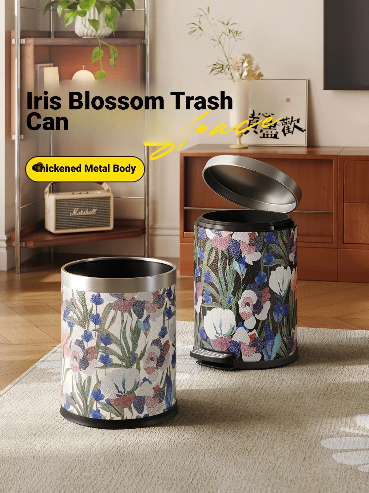 Stylish Stainless Steel Leather Trash Can - Retro High-End Design for Home Use, Elegant Foot Pedal with Lid, Perfect for Living Room Décor