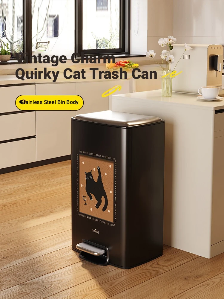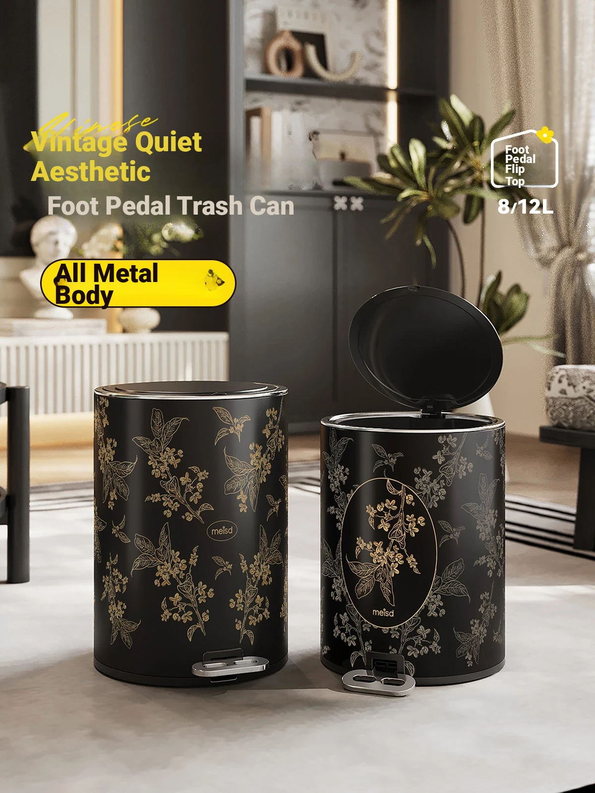 Meisida Stainless Steel Trash Can - Vintage Style 2025 New Model for Home, Spacious and Elegant Foot Pedal Bin for Living Room and Bedroom
