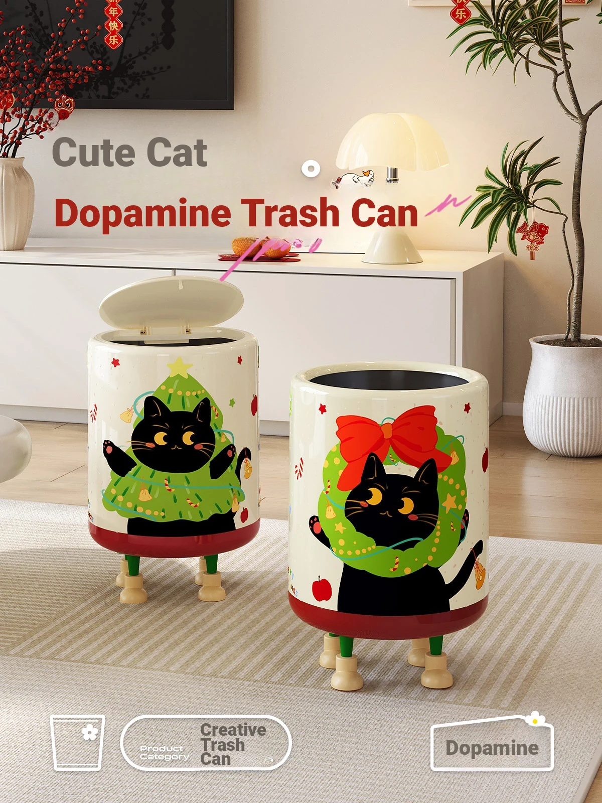 Stylish Meisida Trash Can for Home - Large Capacity Press-Top Bin with Lid for Christmas Cat Lovers, Perfect for Living Room and Bedroom