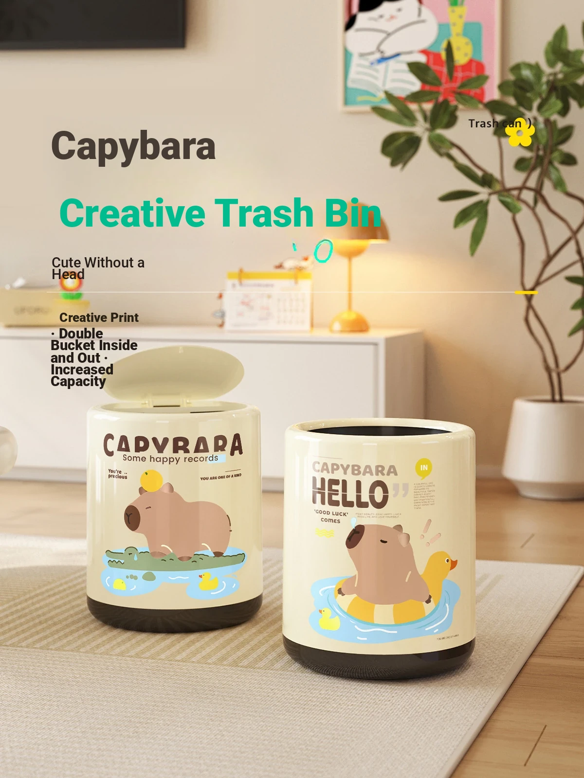 Cute Capybara Trash Can by Meisida - Stylish Large Capacity Covered Storage Bin for Home Living Room, Perfect for Organizing with Charm!