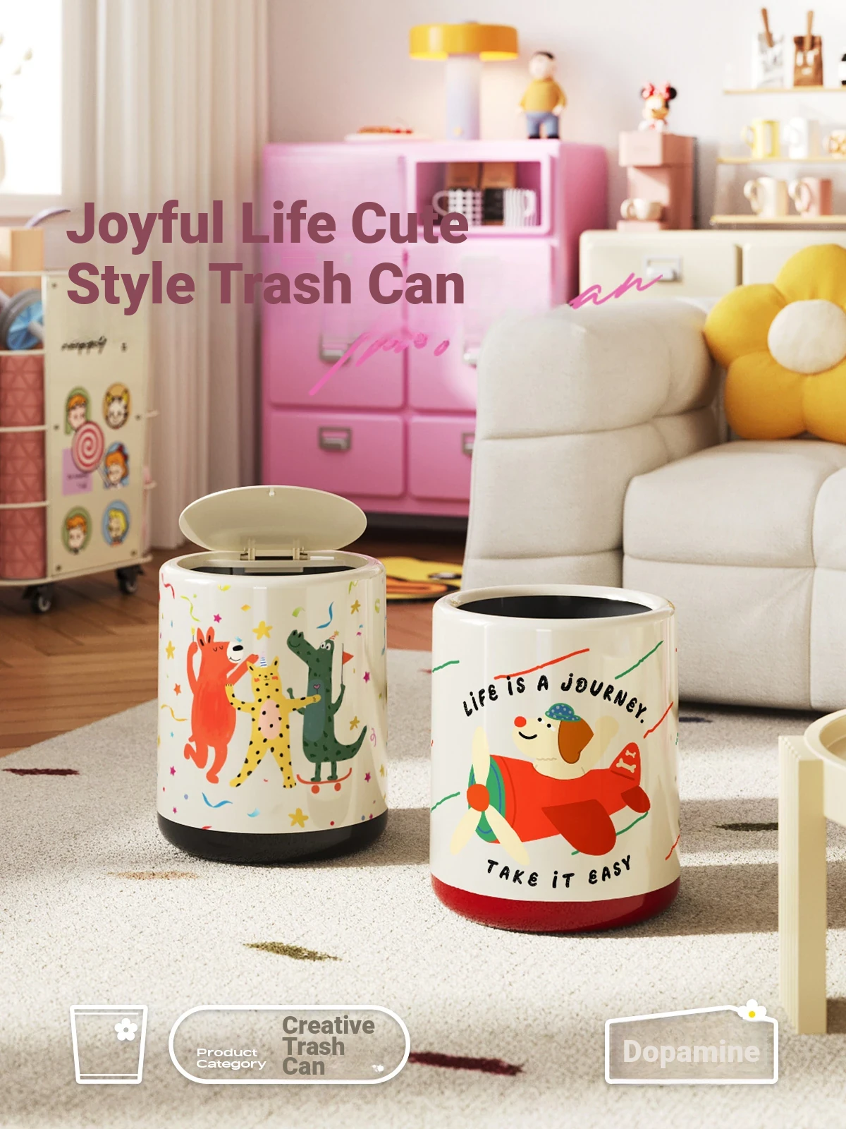 Meisida Dopamine Trash Can - 2025 New Model, Large Capacity, Stylish Cartoon Design for Home, Ideal for Bedrooms and Living Rooms