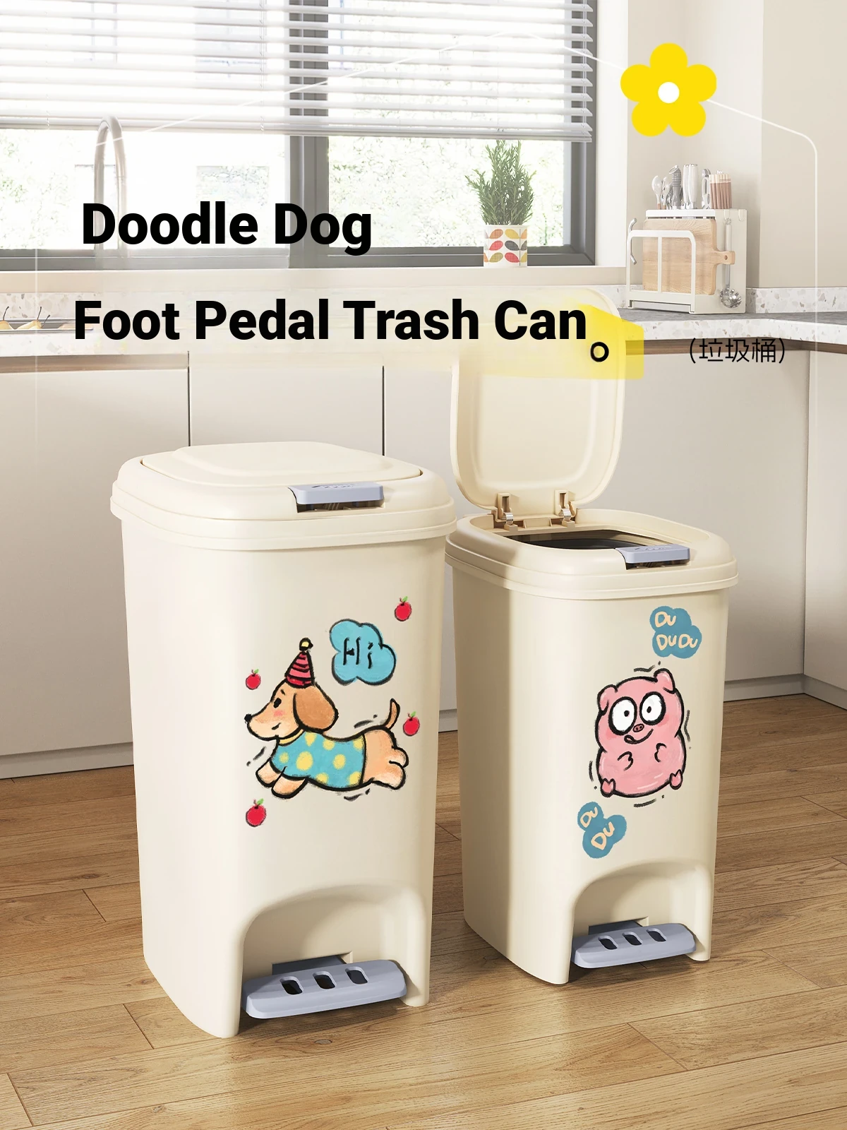 Meisida Creative Cute Cartoon Trash Can - New Dopamine Design with Foot Pedal, Double Opening, Large Capacity for Home Use