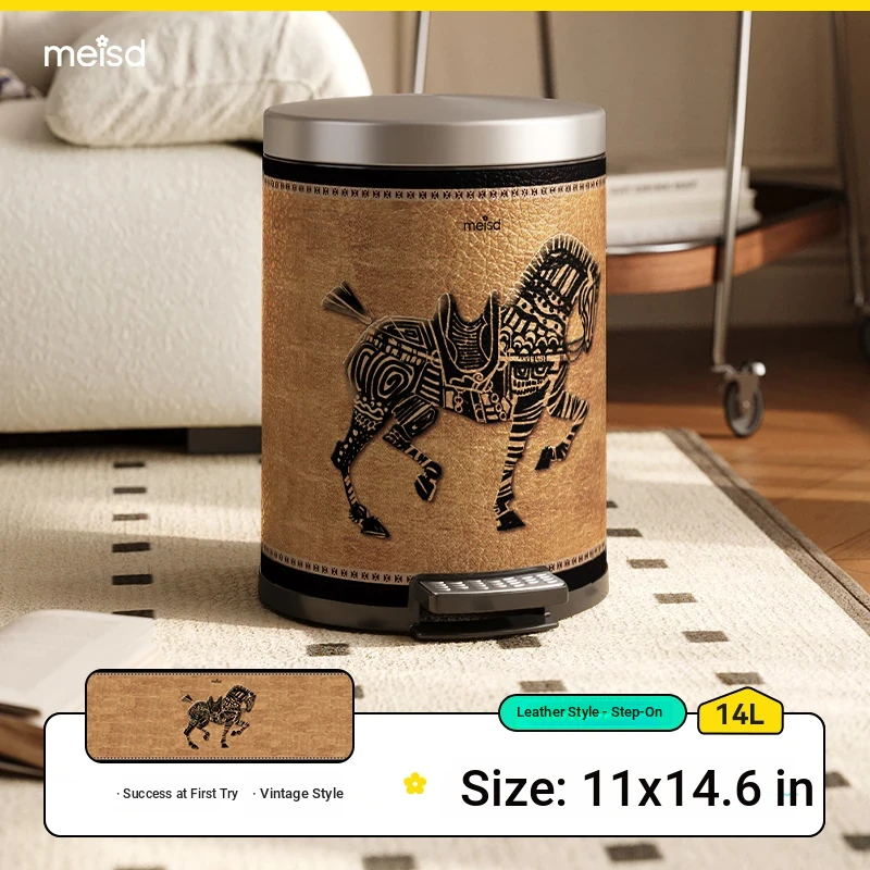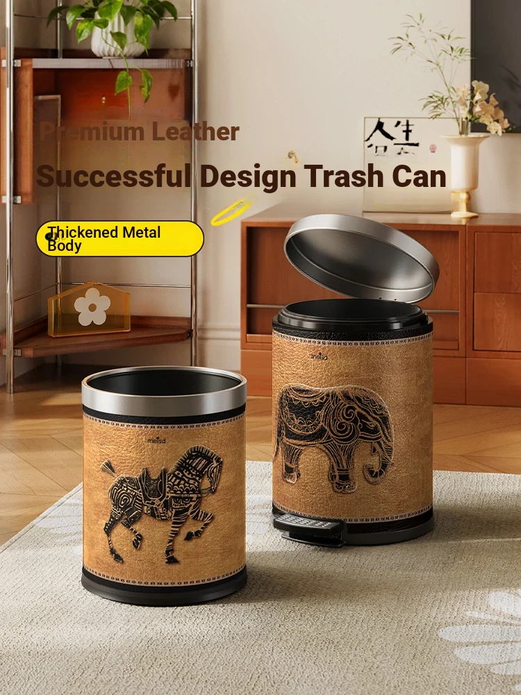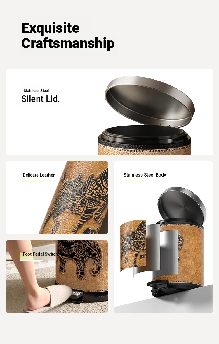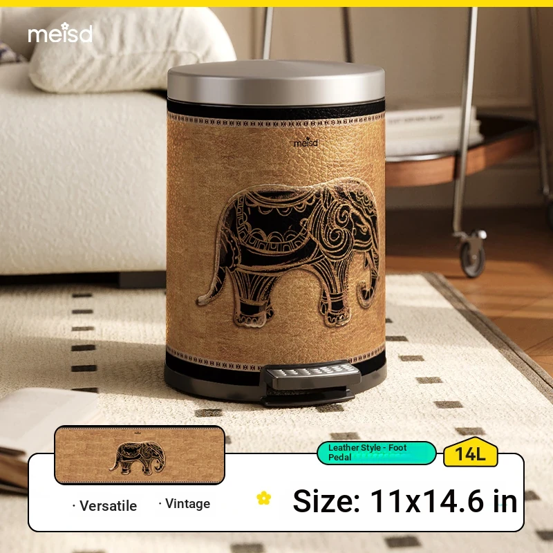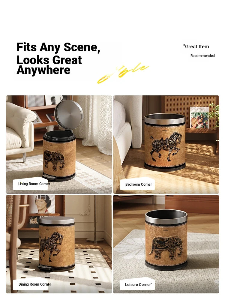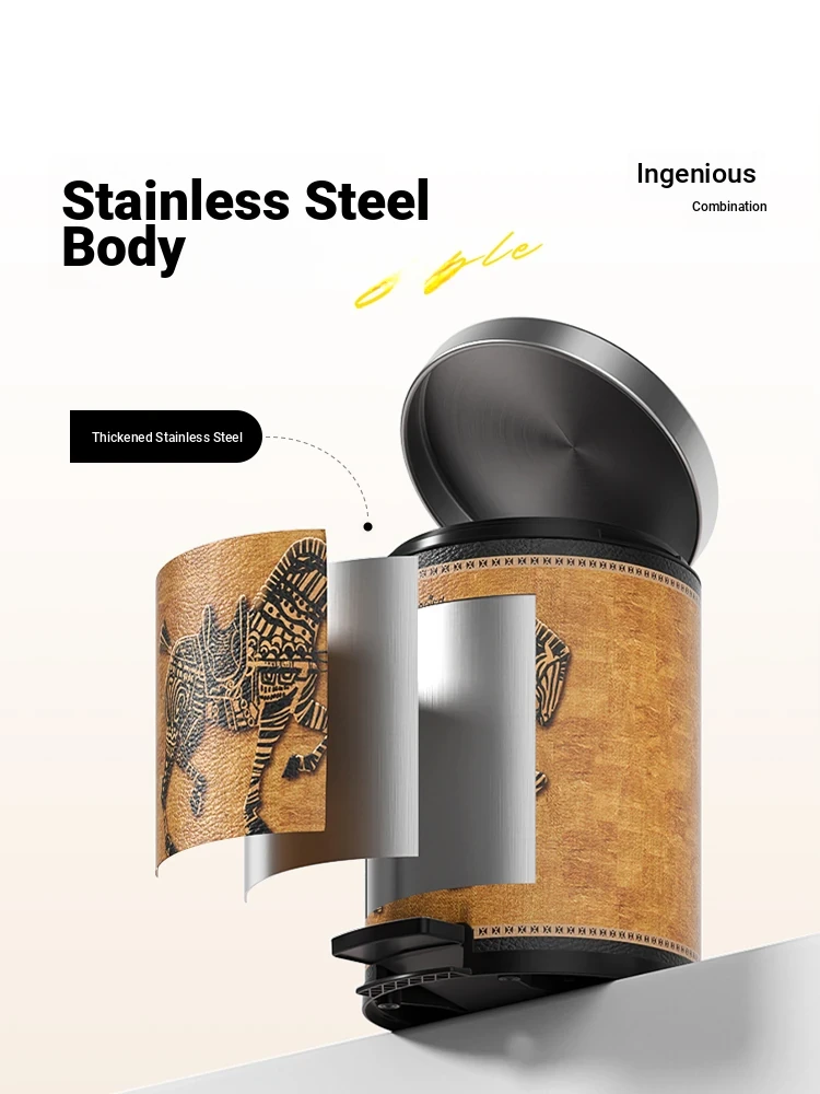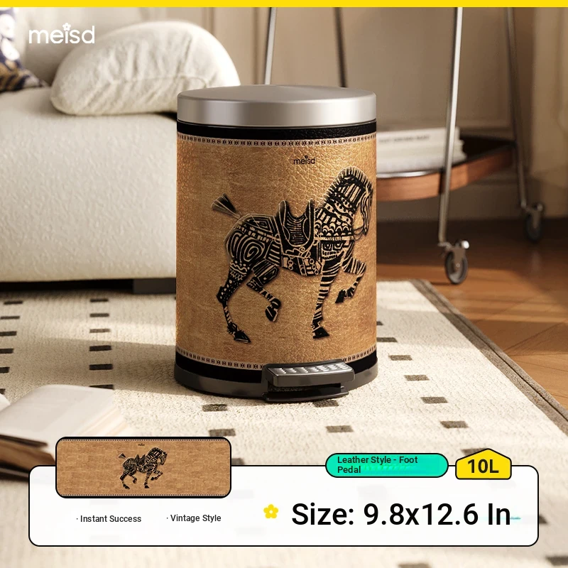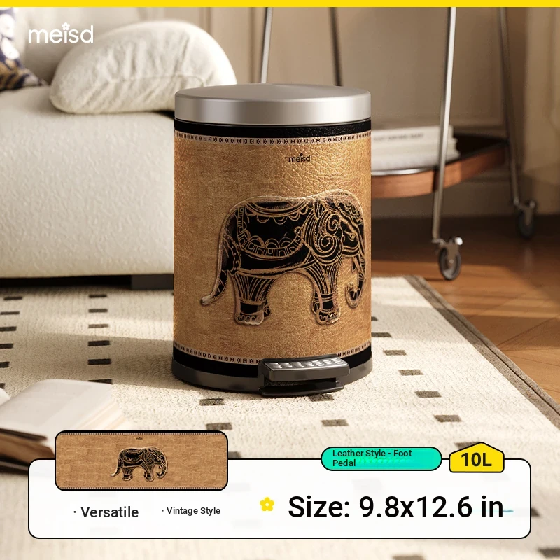 Stylish Retro Stainless Steel Trash Can for Home Use - Elegant Foot Pedal Design with Lid, Large Capacity and High Aesthetic Appeal
