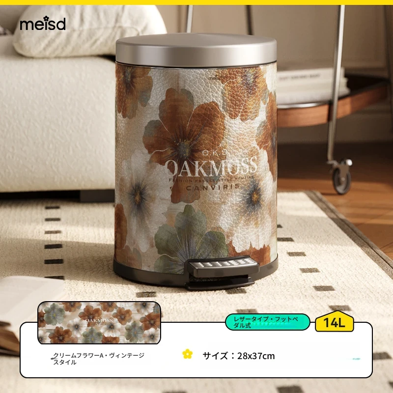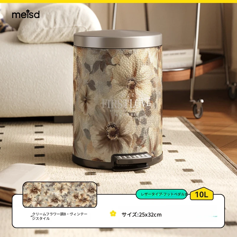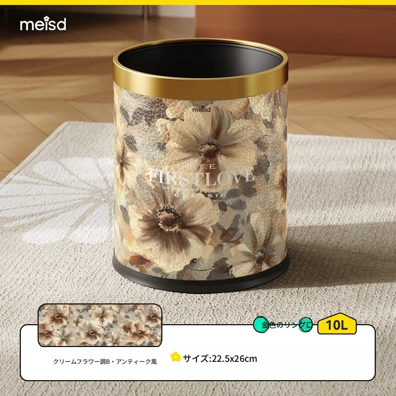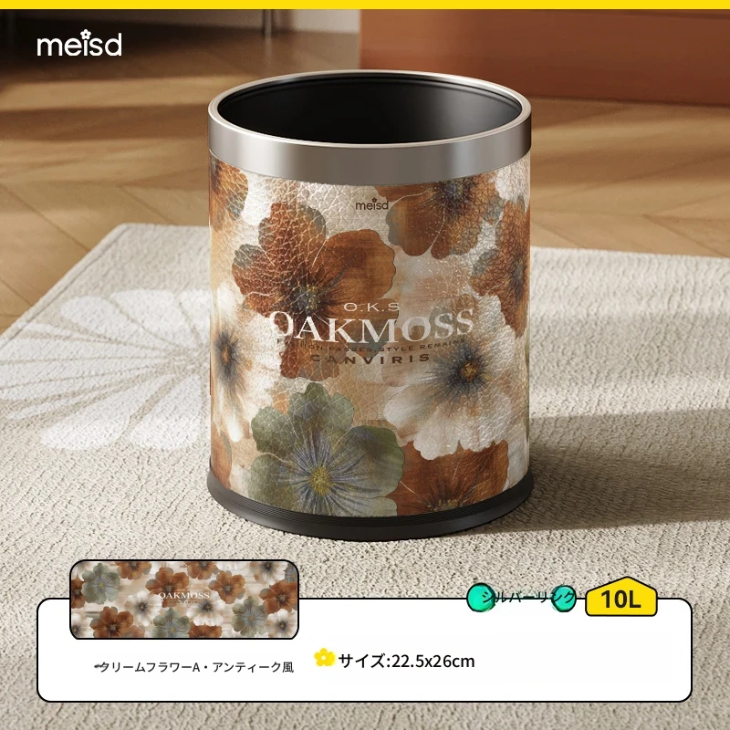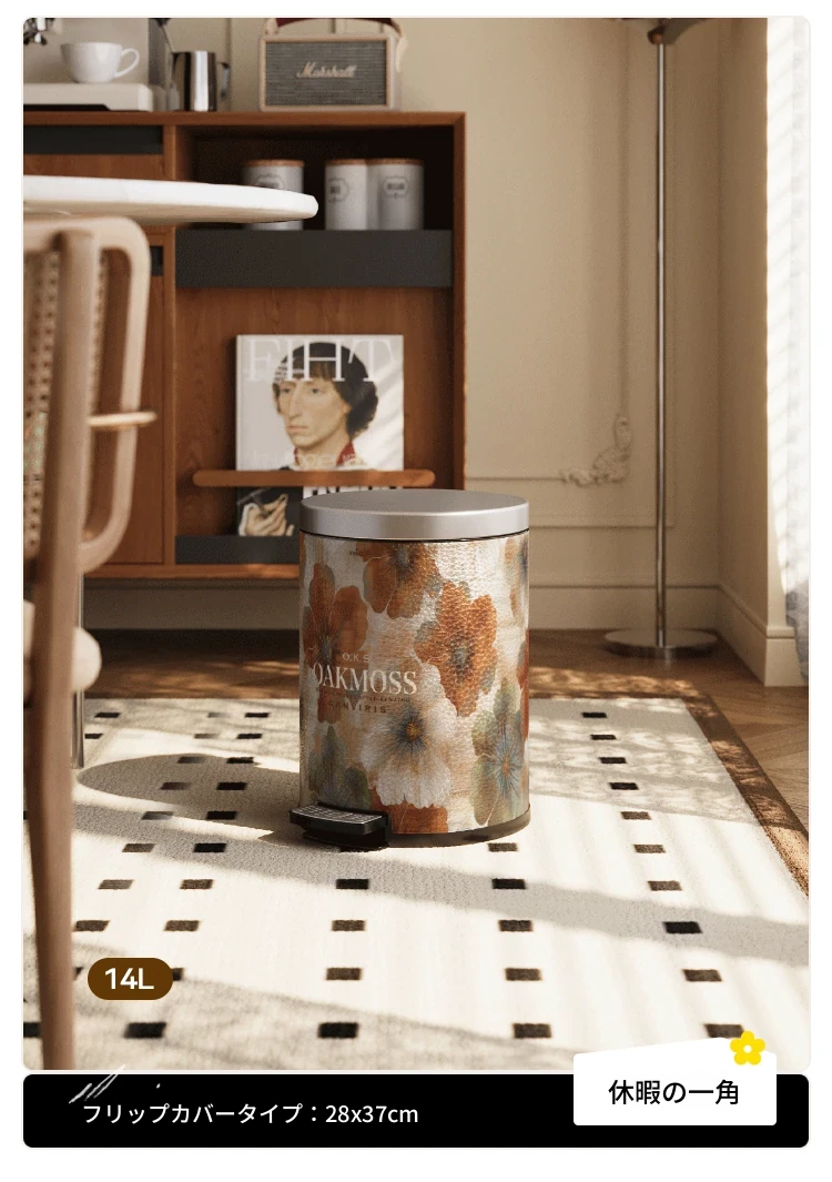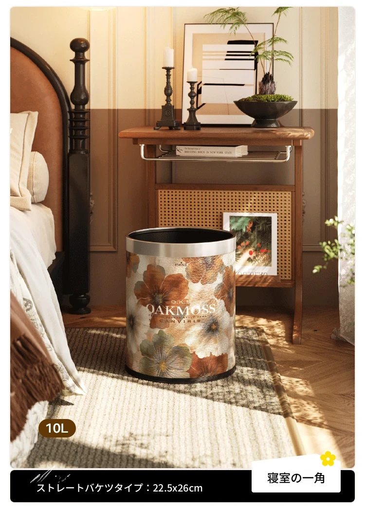 美世达の大容量ゴミ箱、蓋付き!レトロデザインでリビングや寝室にぴったり!2025年新作、中古風スタイルでおしゃれにお部屋を演出。