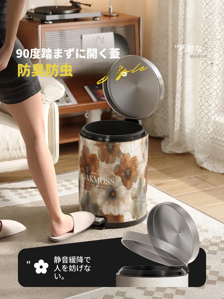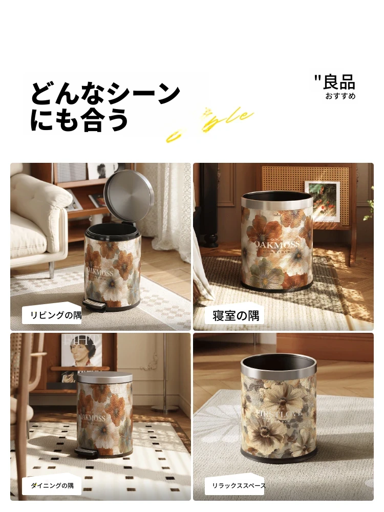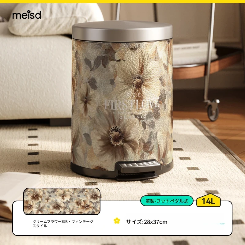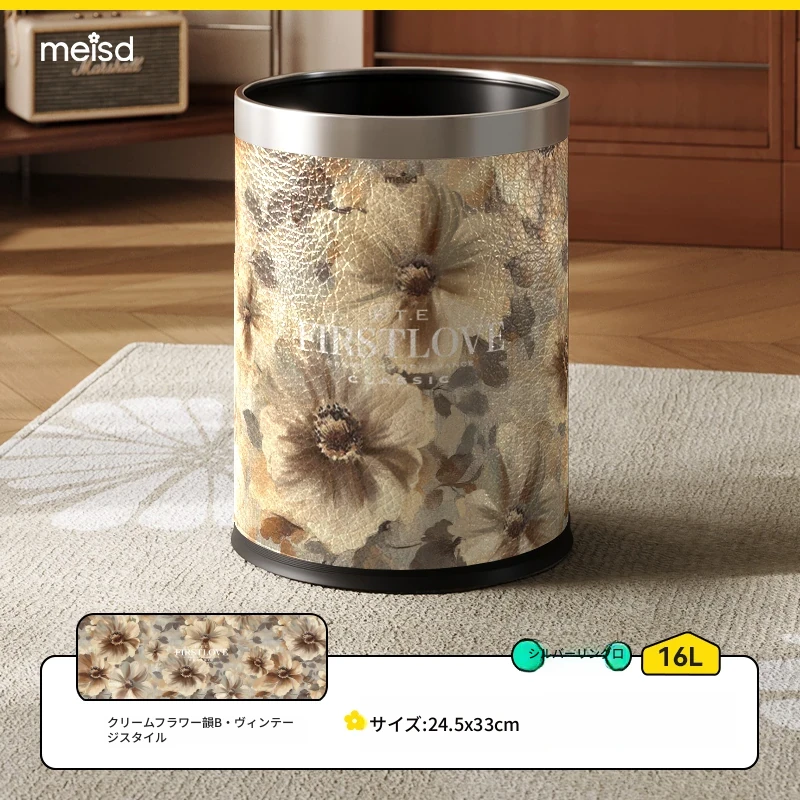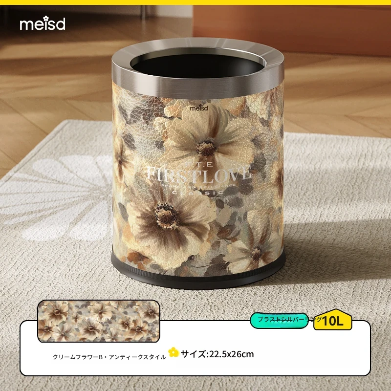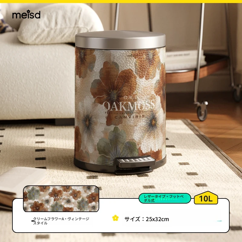 美世达の大容量ゴミ箱、蓋付き!レトロデザインでリビングや寝室にぴったり!2025年新作、中古風スタイルでおしゃれにお部屋を演出。