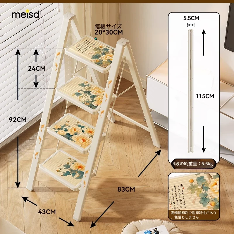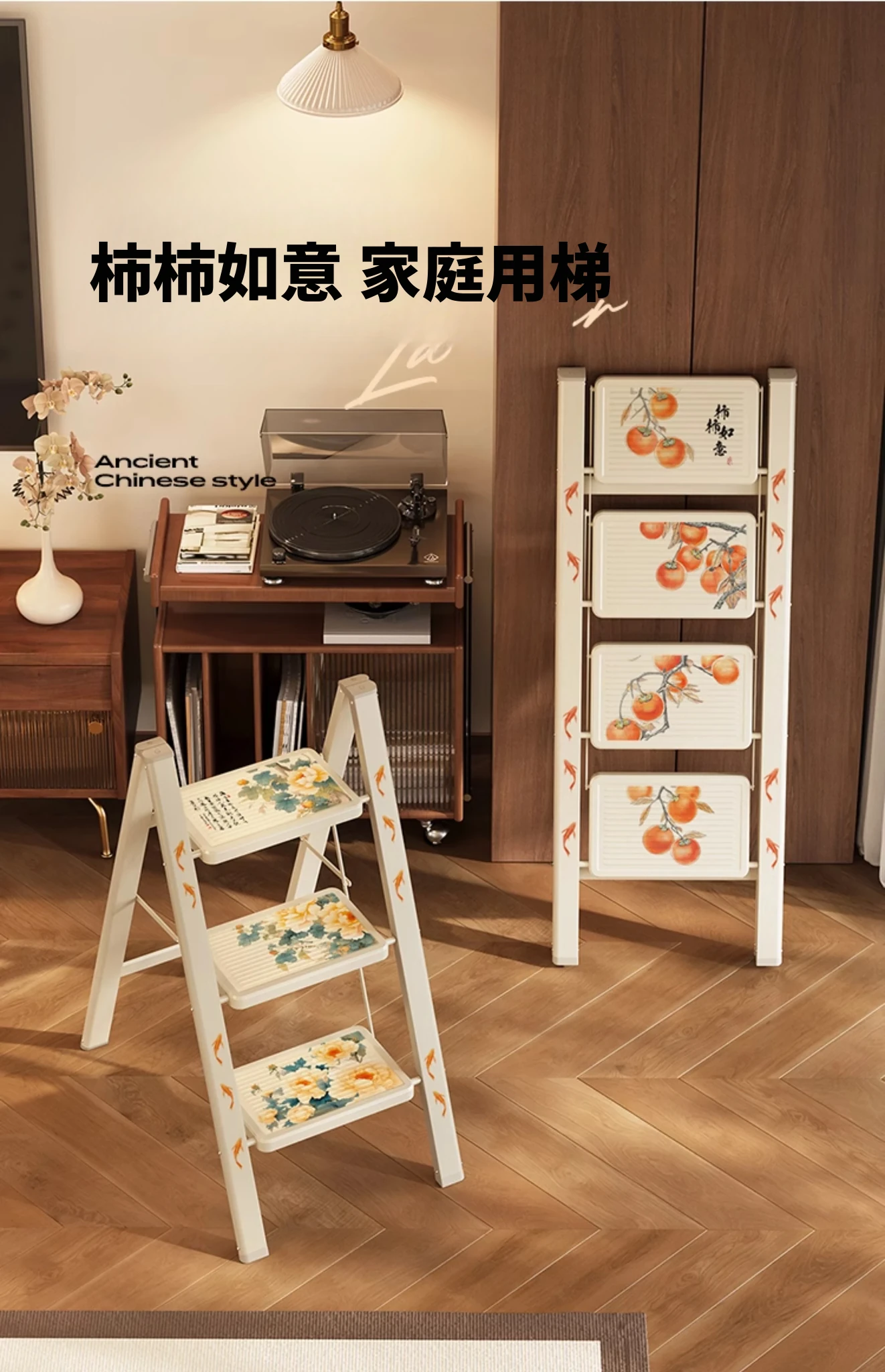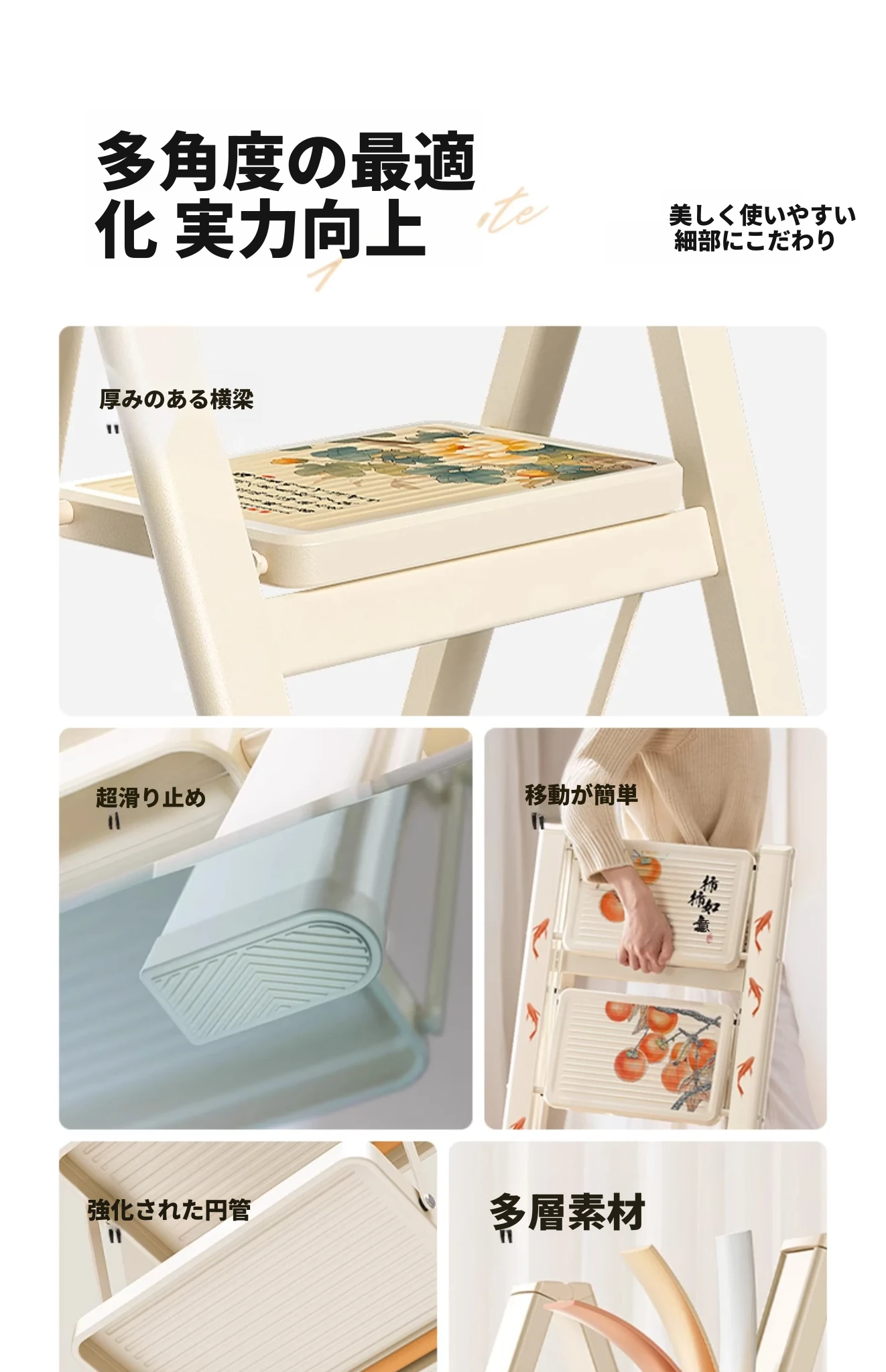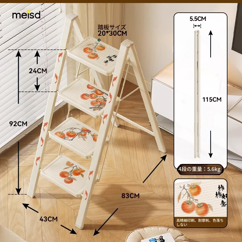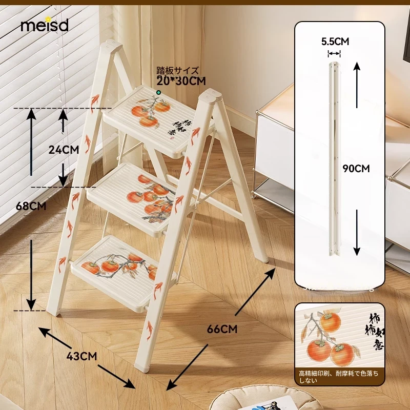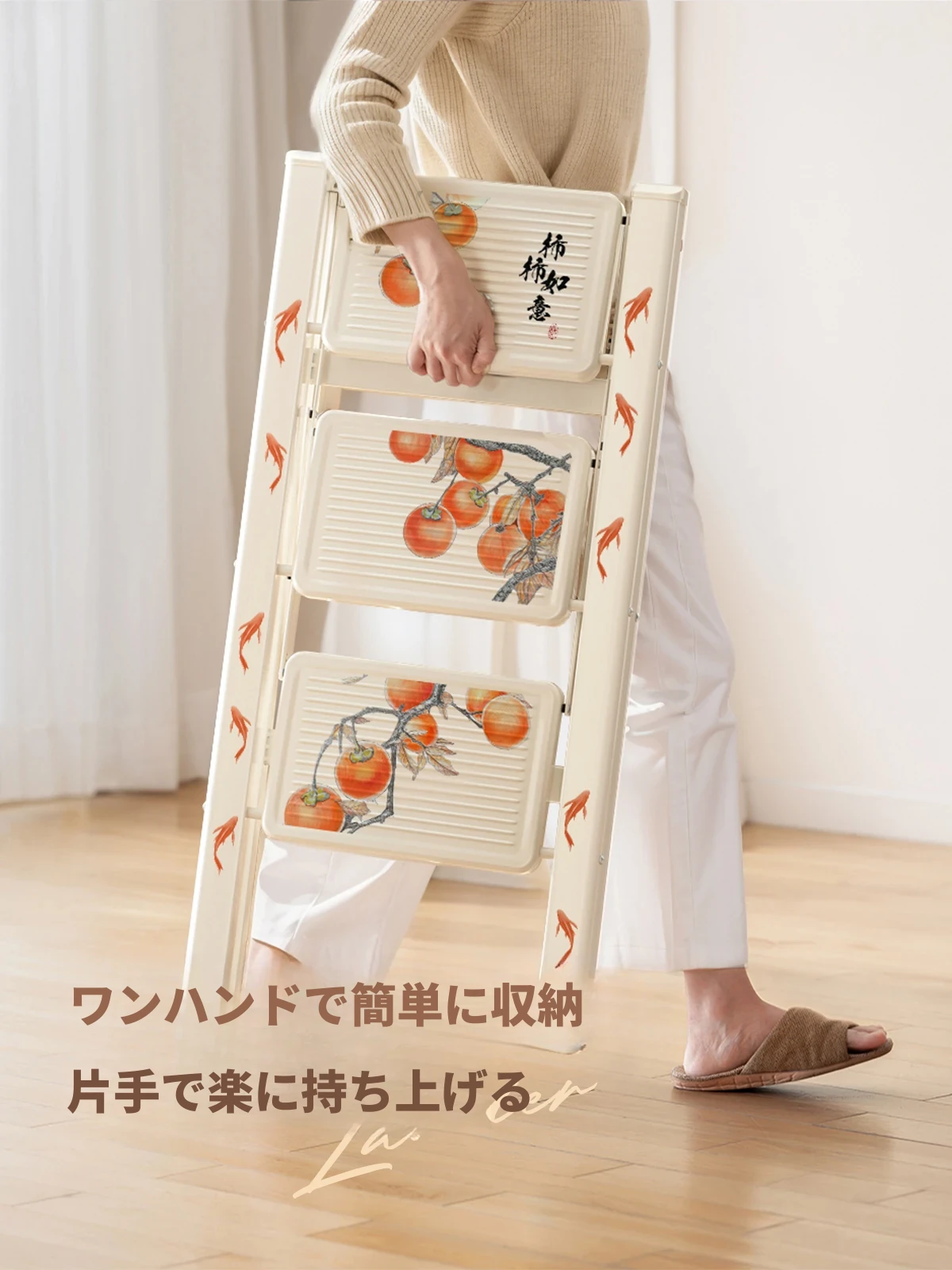 美世达の家庭用軽量折りたたみ梯子 - 中古風デザイン、丈夫な伸縮性、三段・四段の選べるタイプ。新居引っ越しや日常の掃除に最適な便利アイテム!