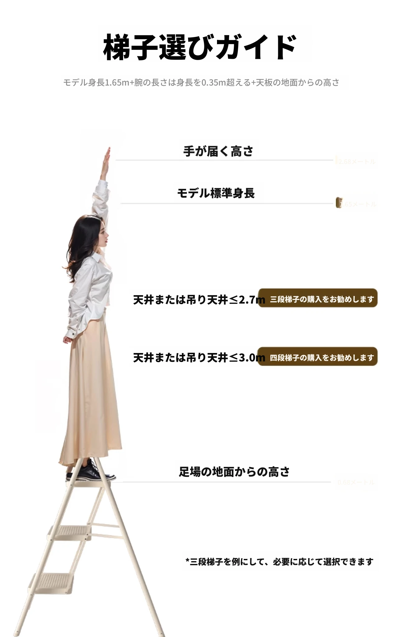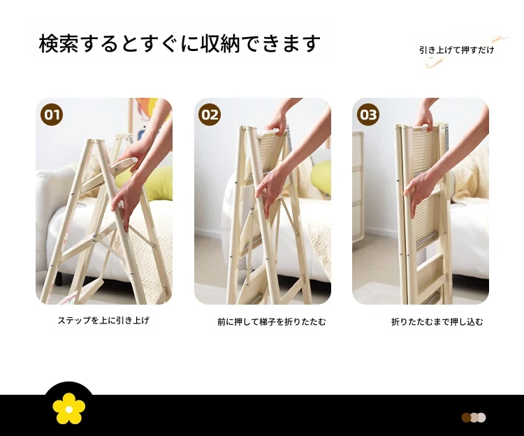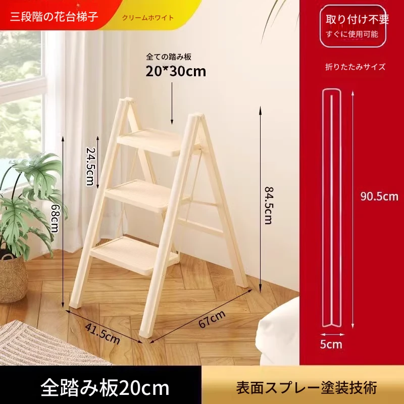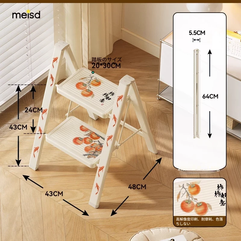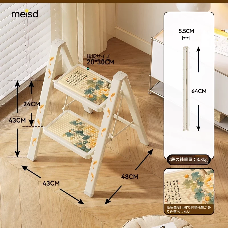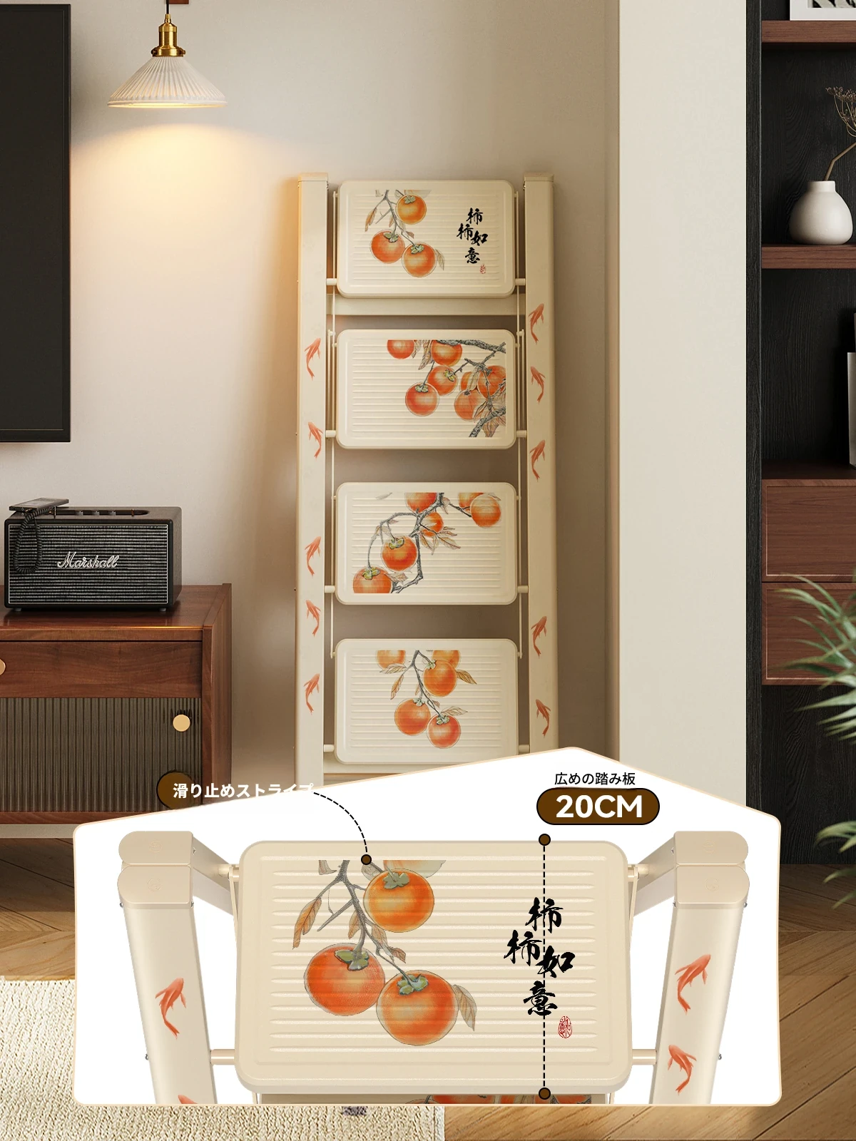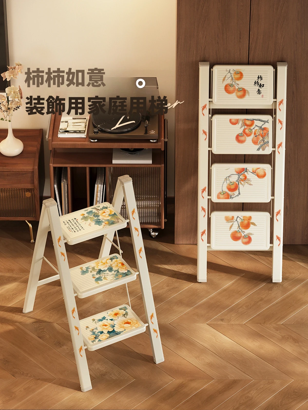 美世达の家庭用軽量折りたたみ梯子 - 中古風デザイン、丈夫な伸縮性、三段・四段の選べるタイプ。新居引っ越しや日常の掃除に最適な便利アイテム!
