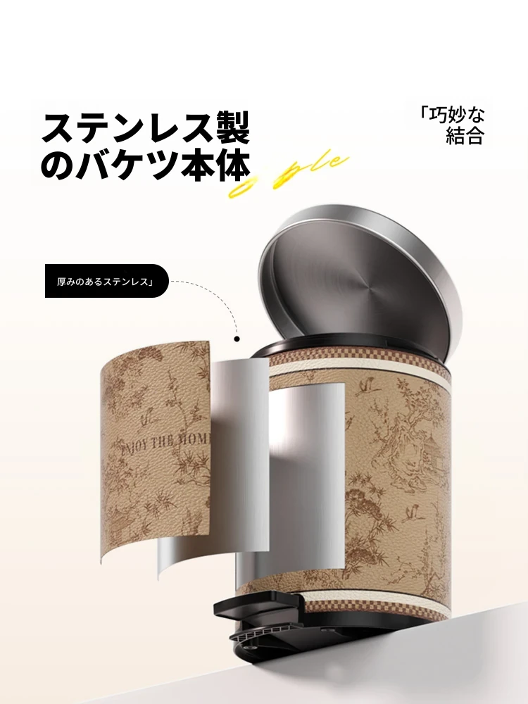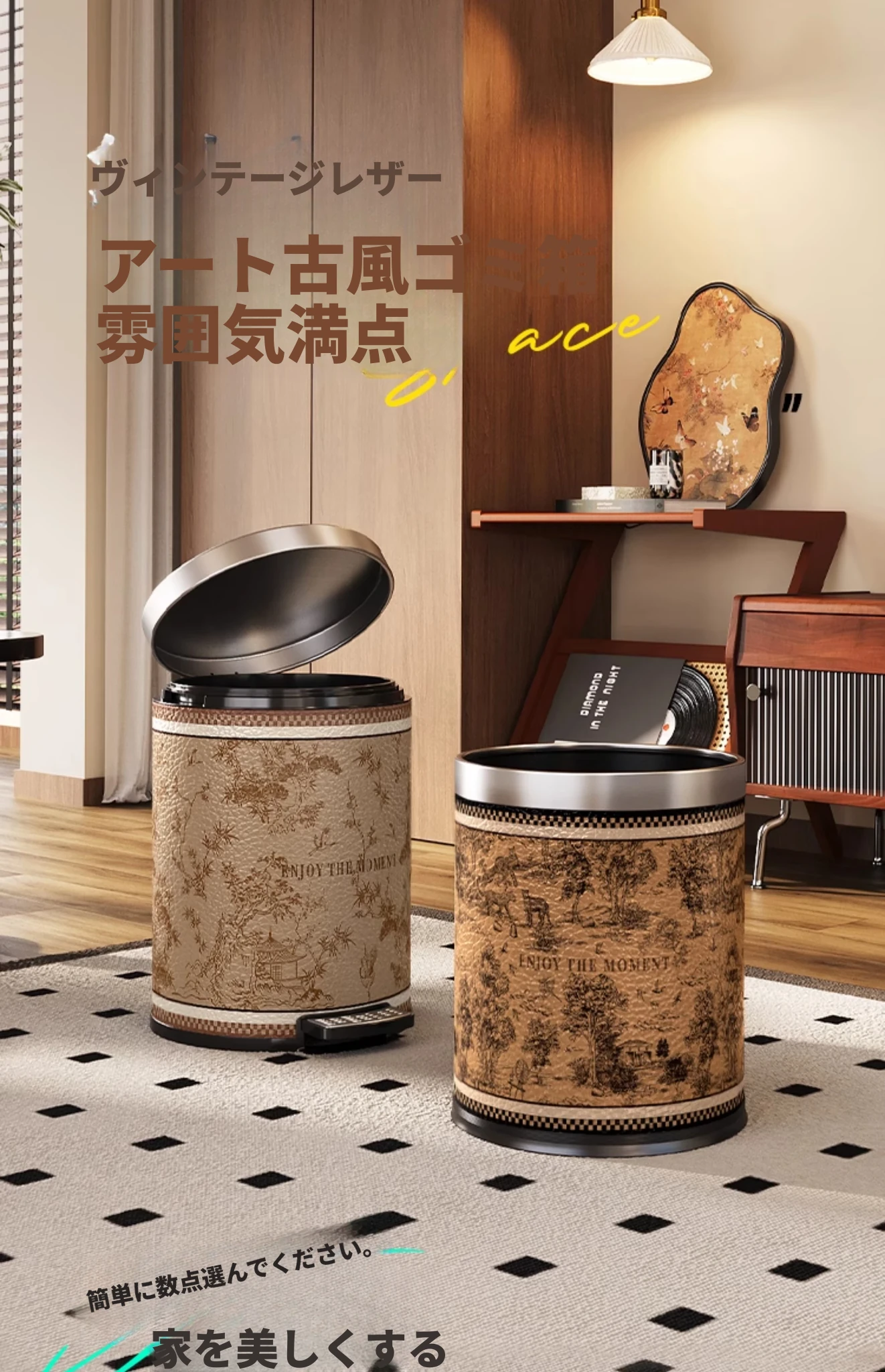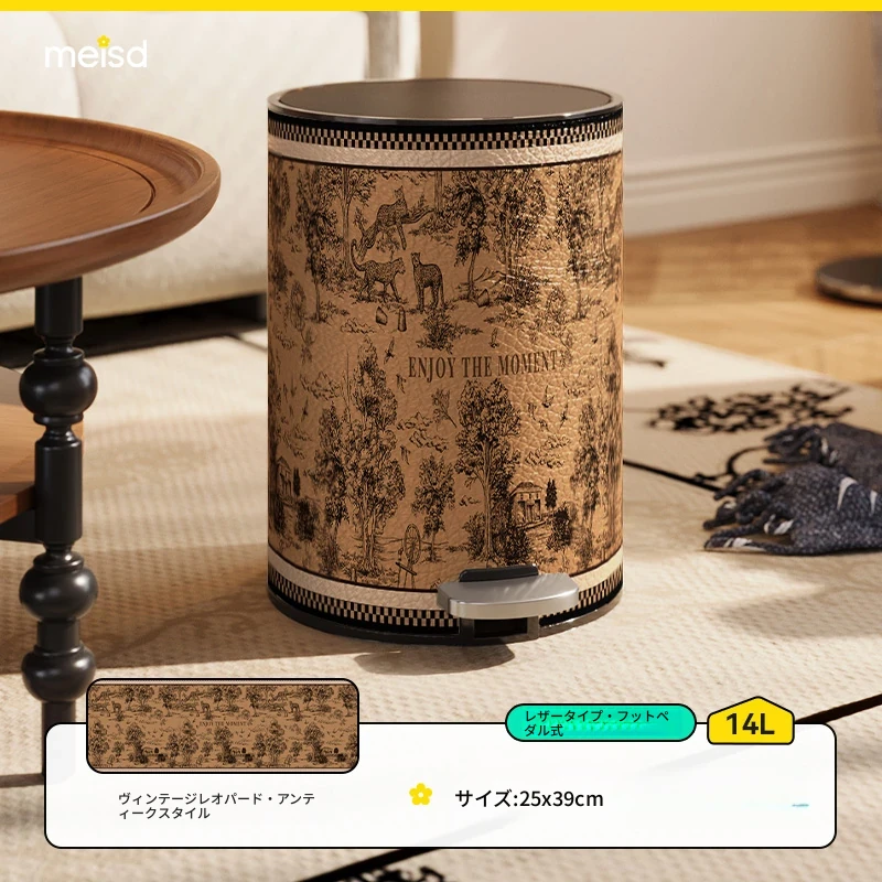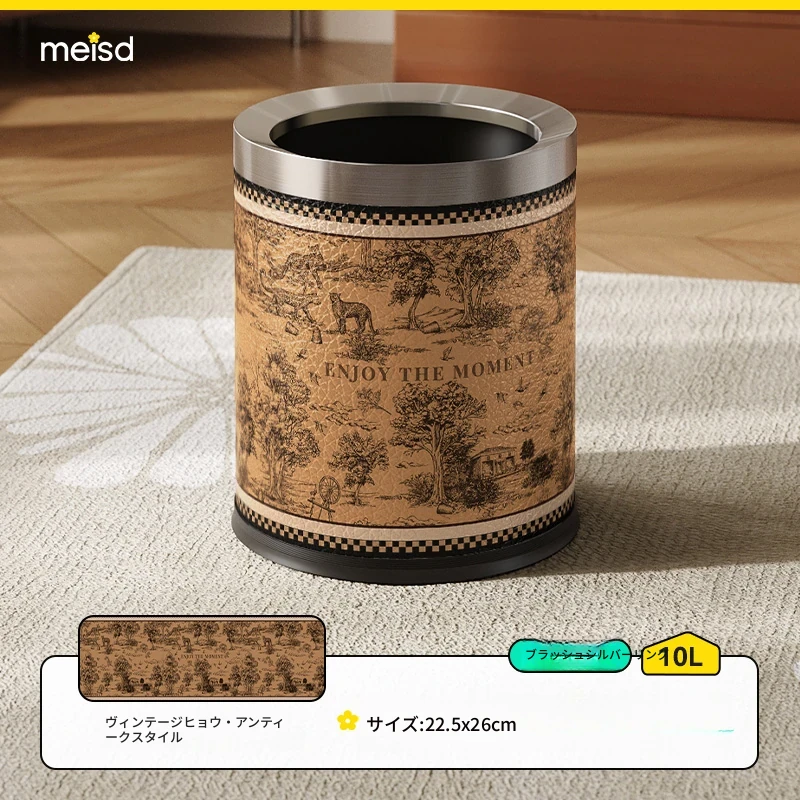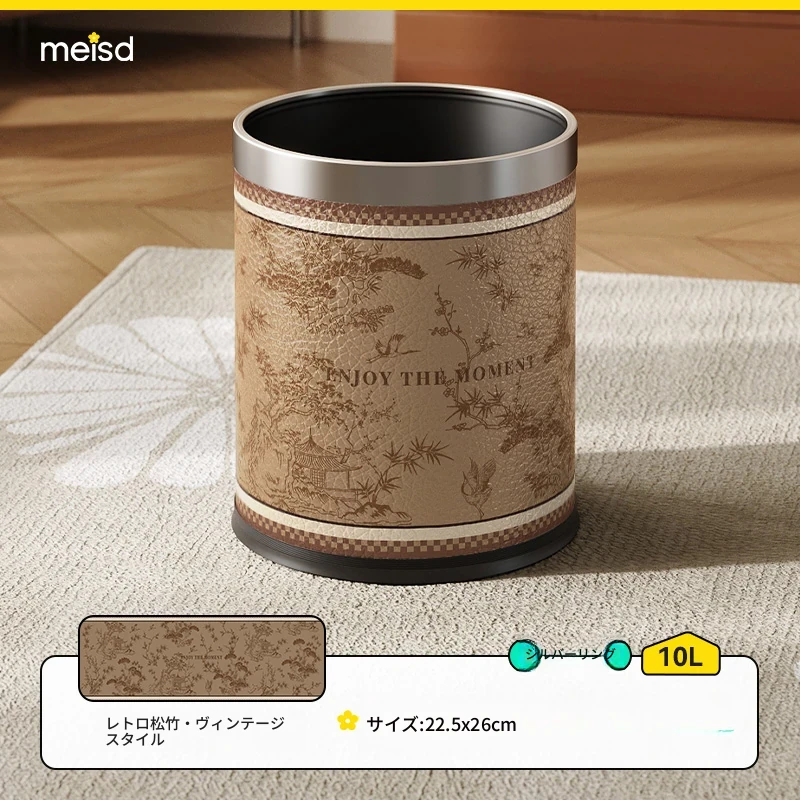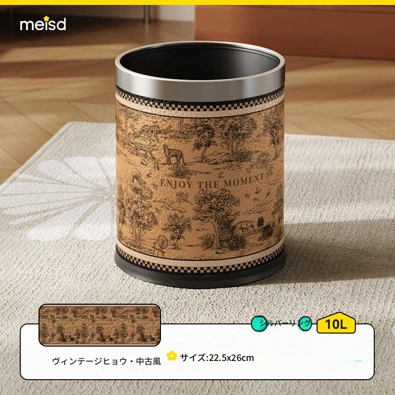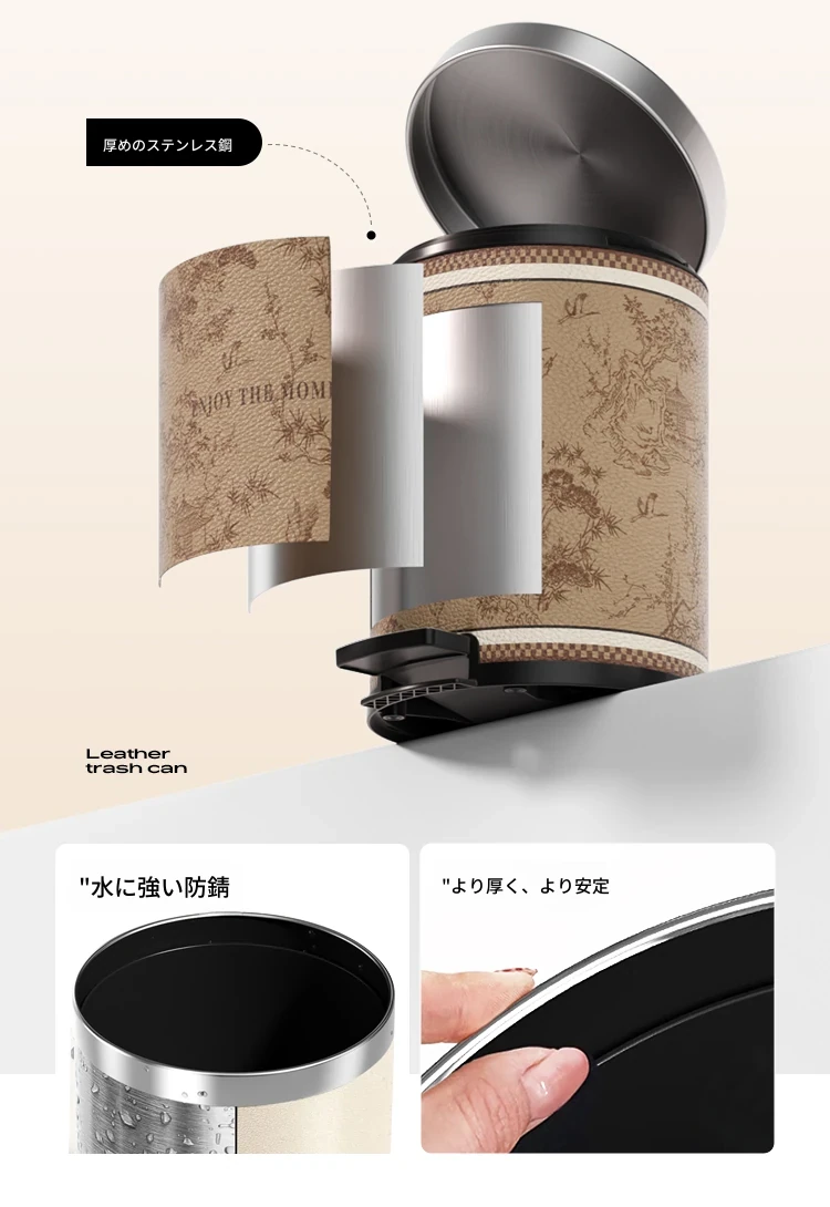 美世达ステンレスレザーゴミ箱|2025年新作|家庭用|リビング・寝室に最適|高級感あふれる大容量ダブルレイヤー|フタ付きで衛生的!