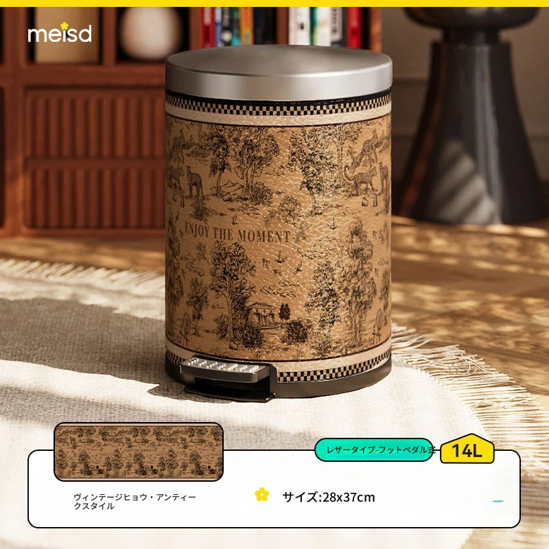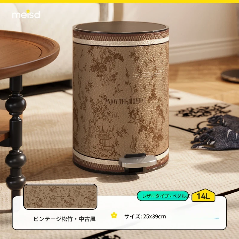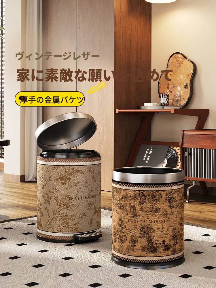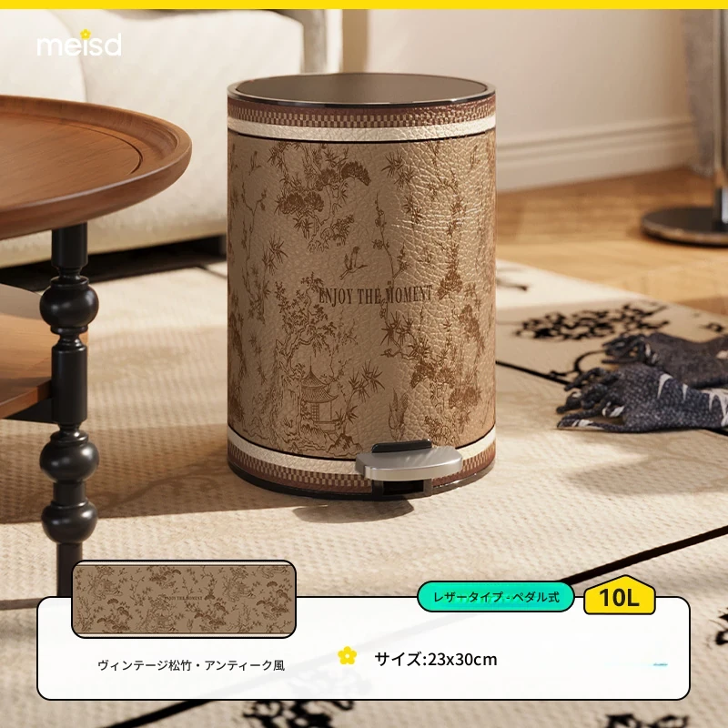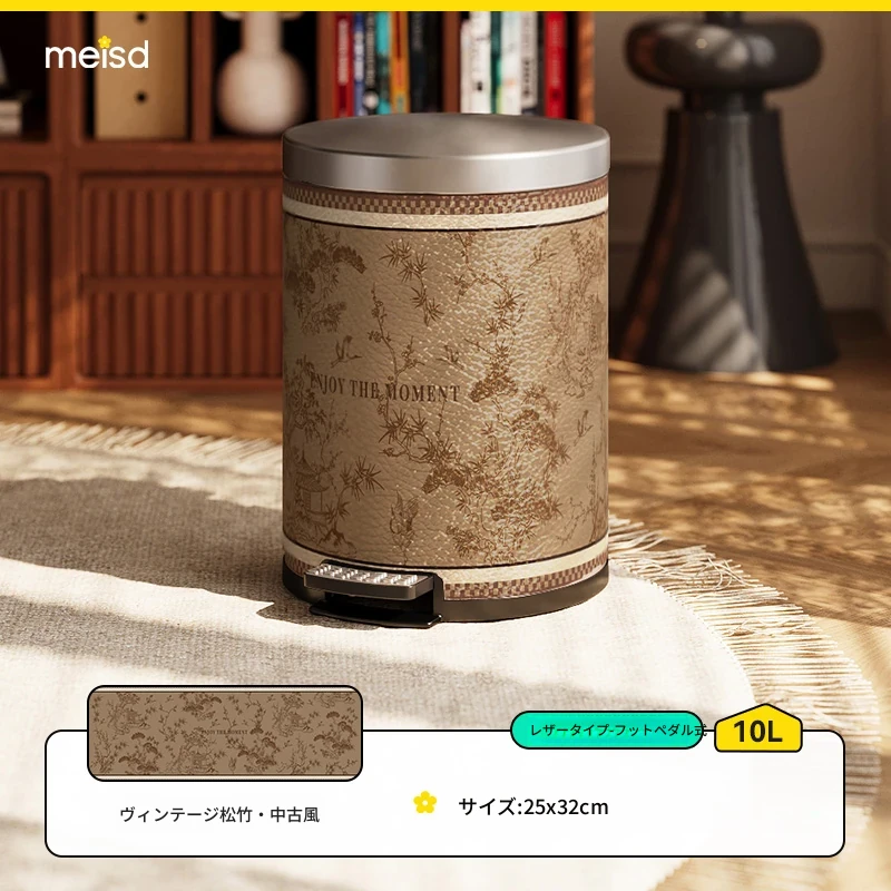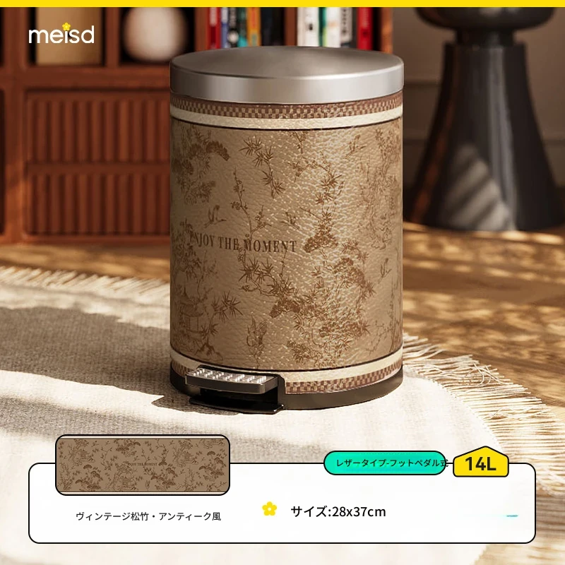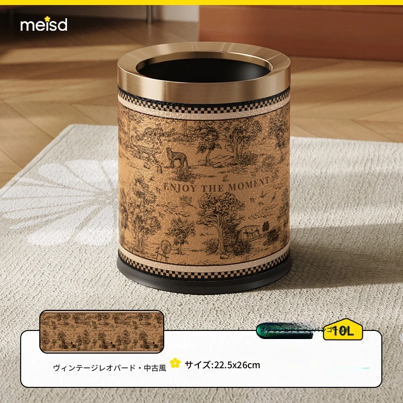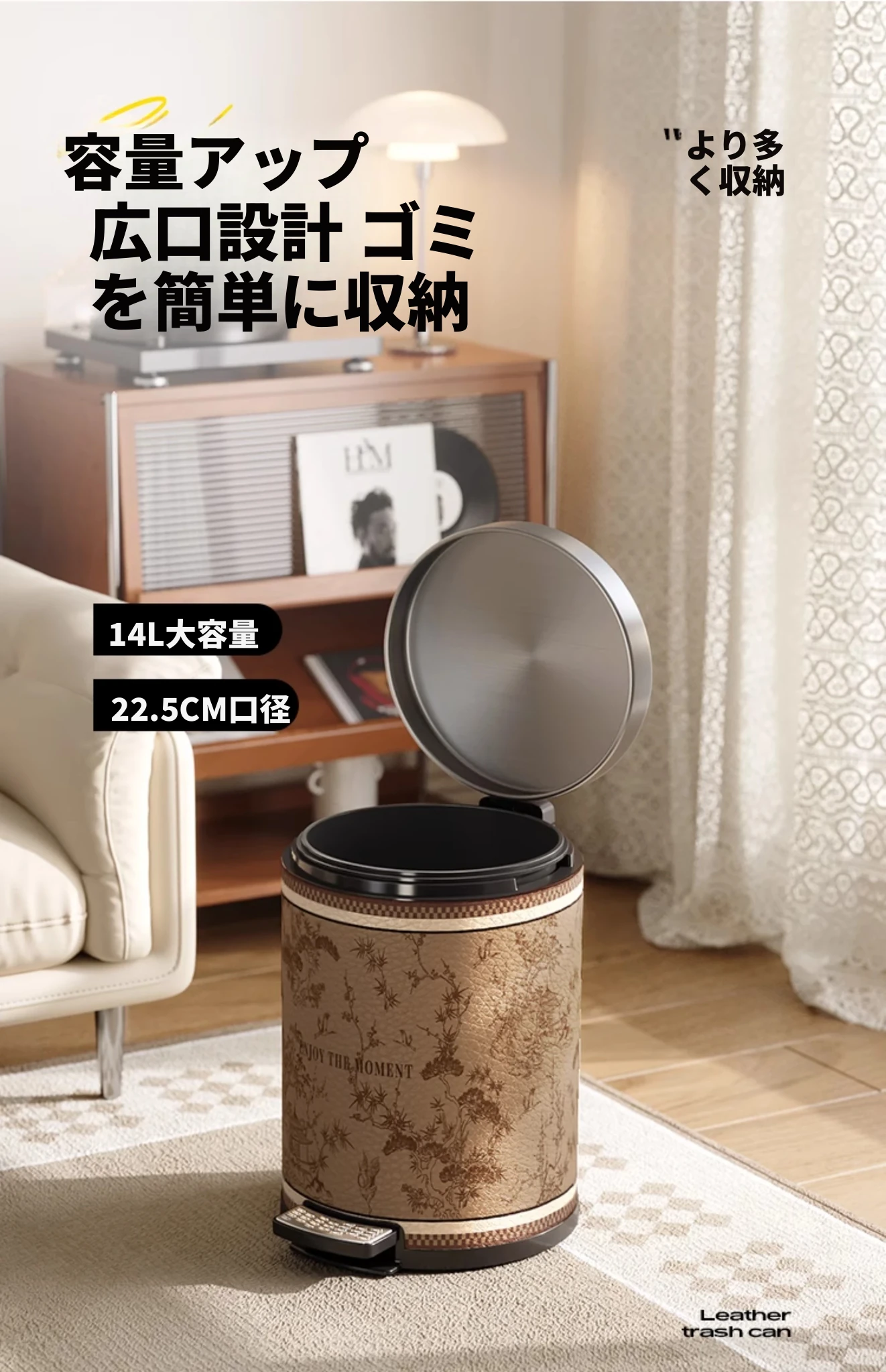 美世达ステンレスレザーゴミ箱|2025年新作|家庭用|リビング・寝室に最適|高級感あふれる大容量ダブルレイヤー|フタ付きで衛生的!
