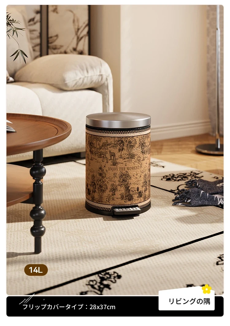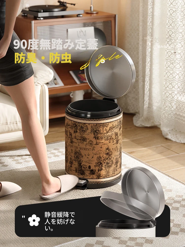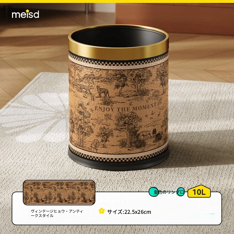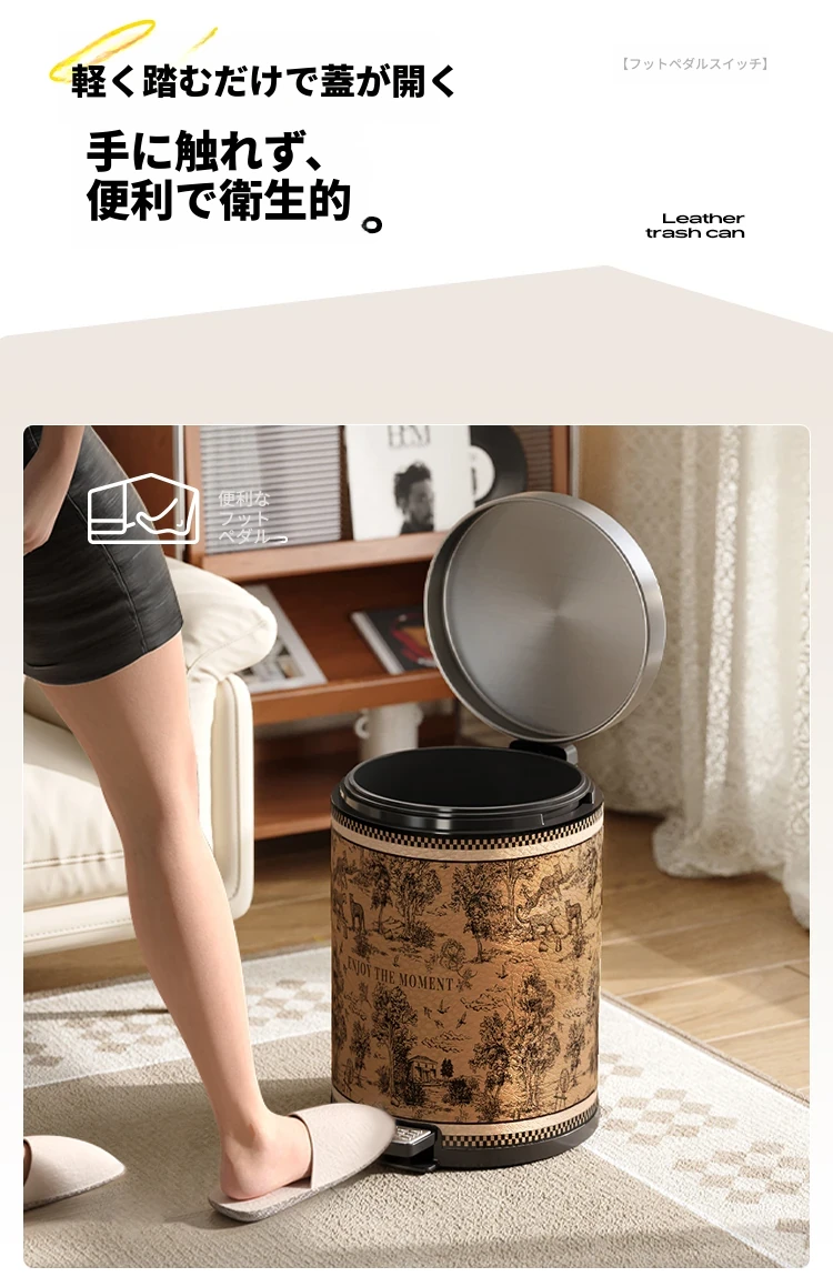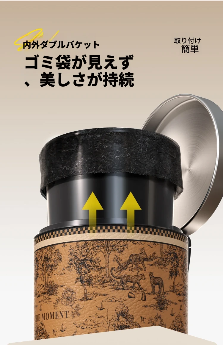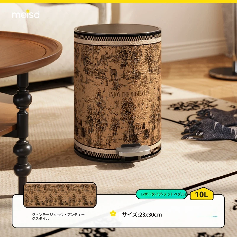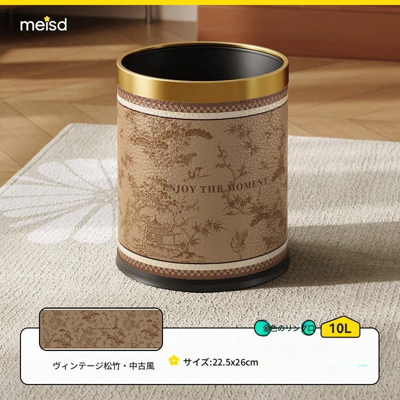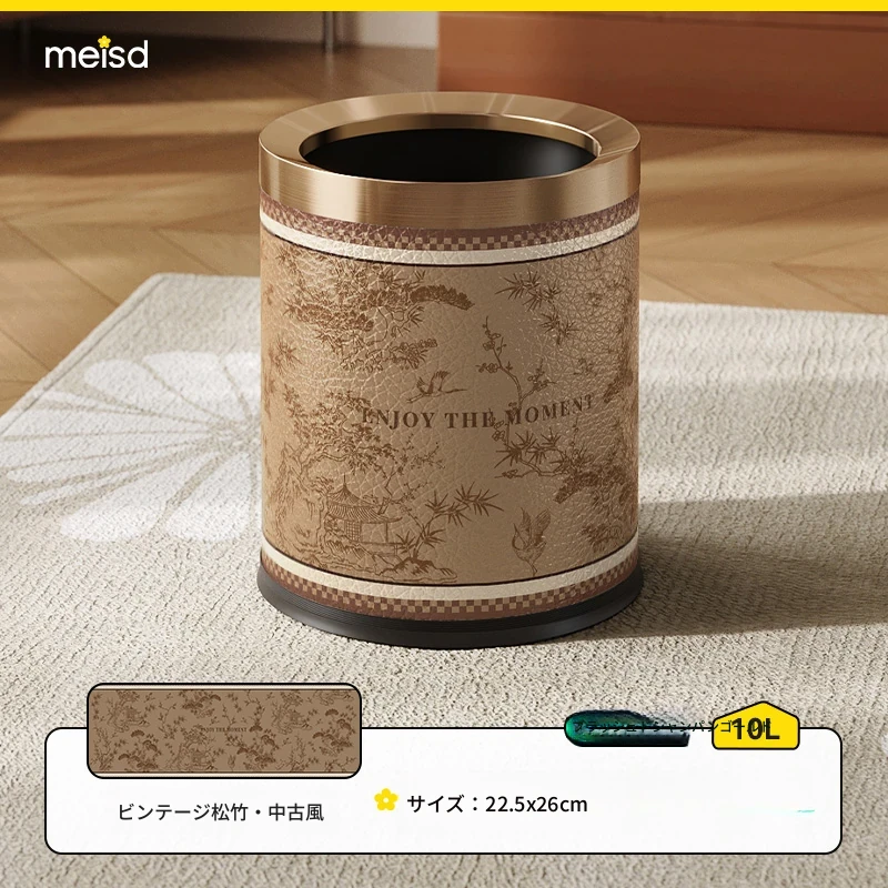 美世达ステンレスレザーゴミ箱|2025年新作|家庭用|リビング・寝室に最適|高級感あふれる大容量ダブルレイヤー|フタ付きで衛生的!