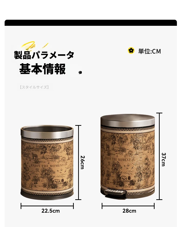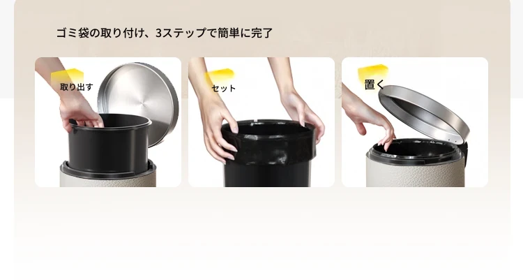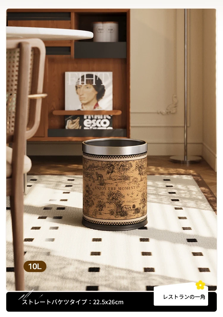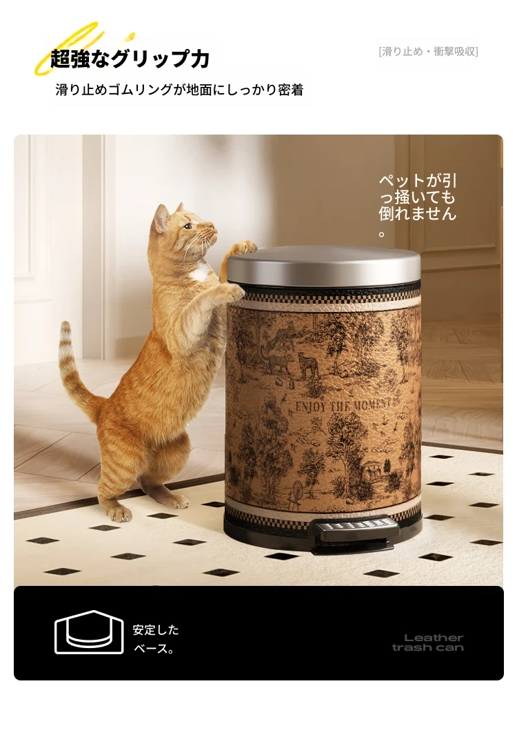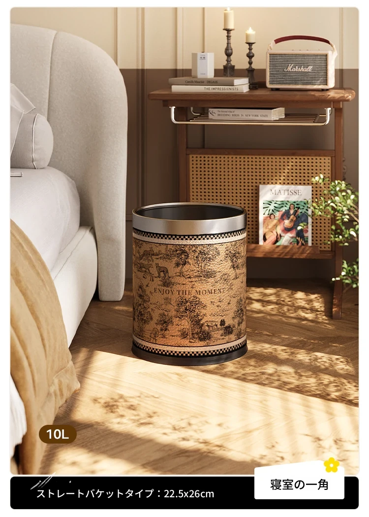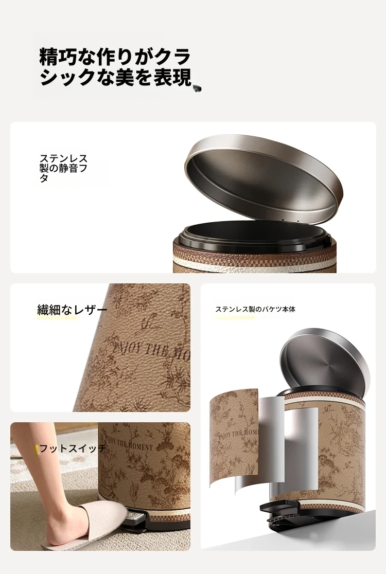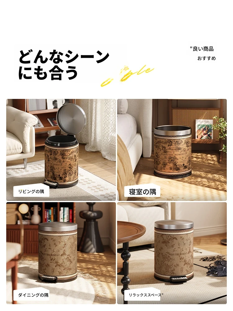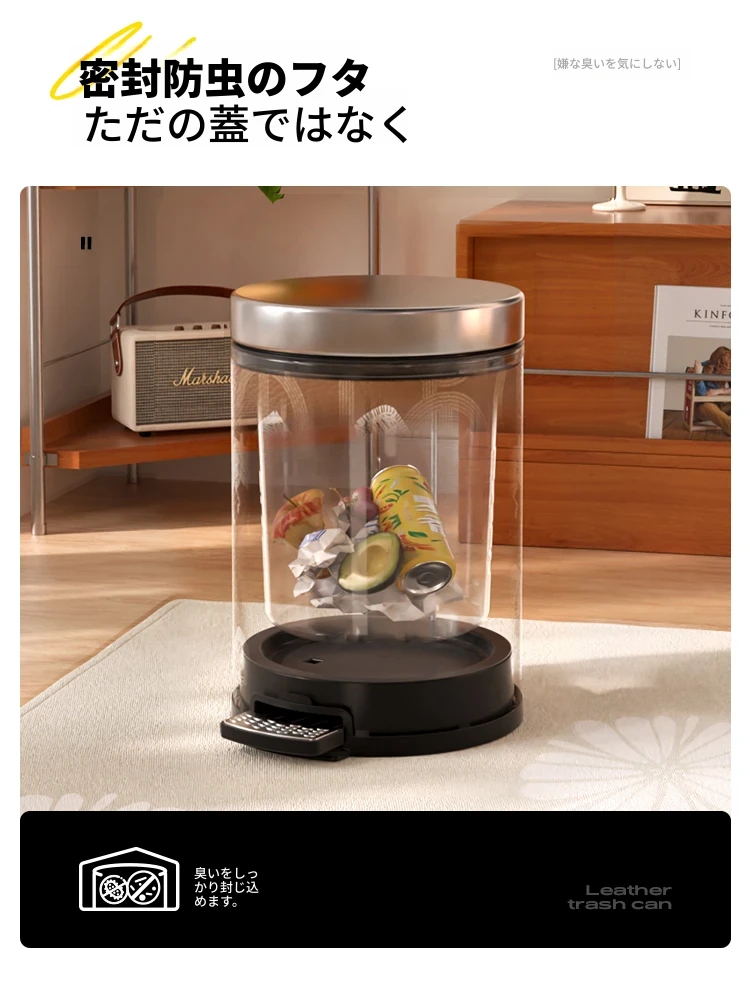 美世达ステンレスレザーゴミ箱|2025年新作|家庭用|リビング・寝室に最適|高級感あふれる大容量ダブルレイヤー|フタ付きで衛生的!