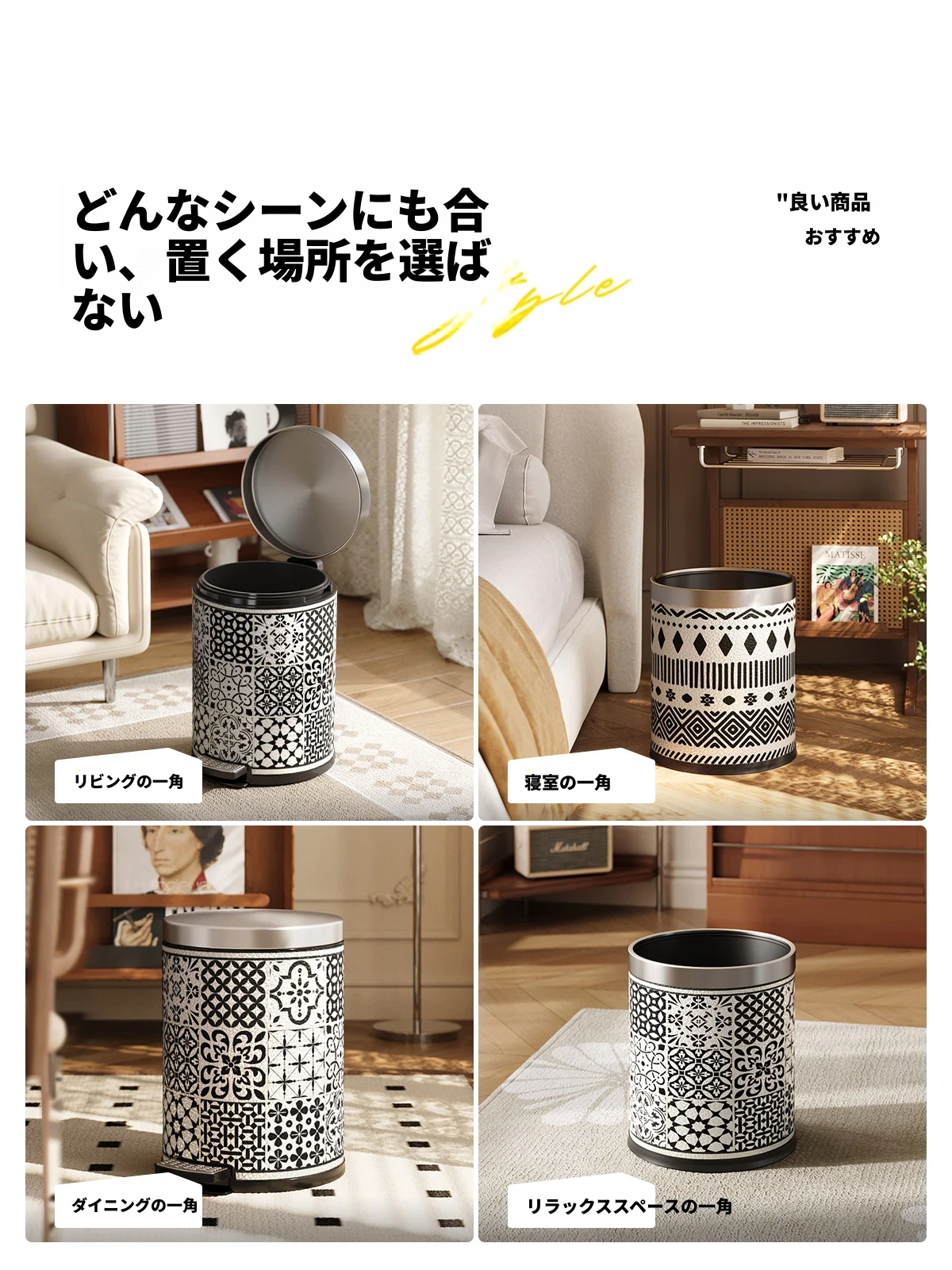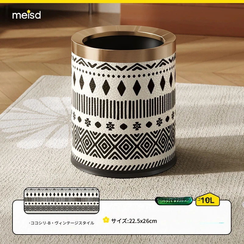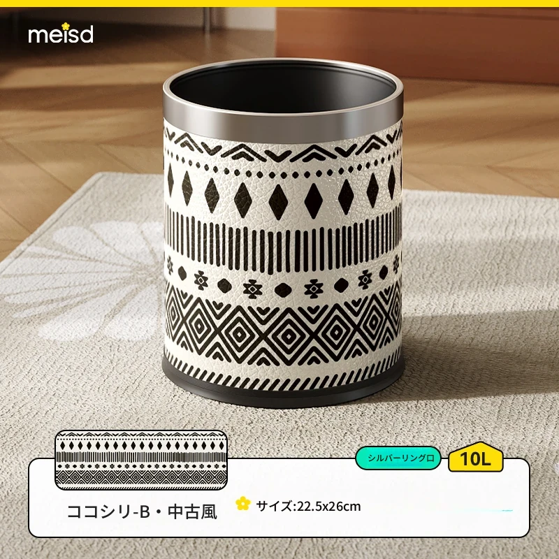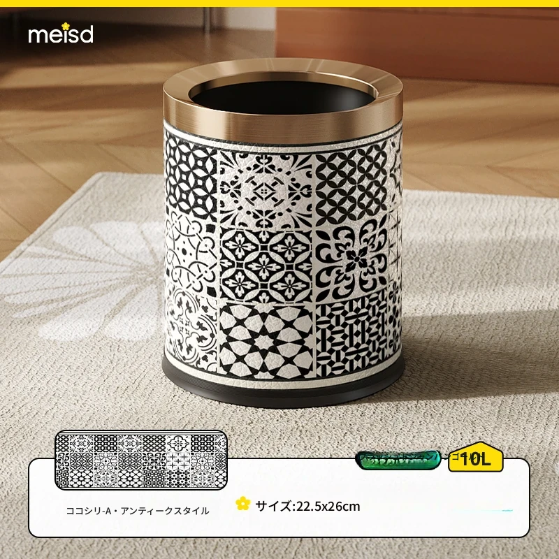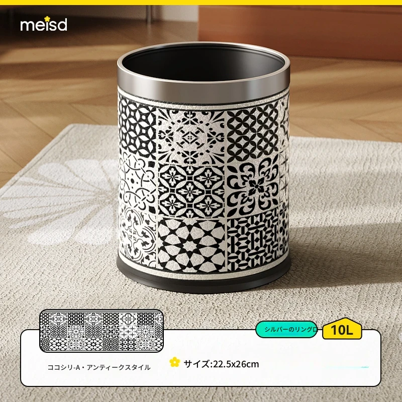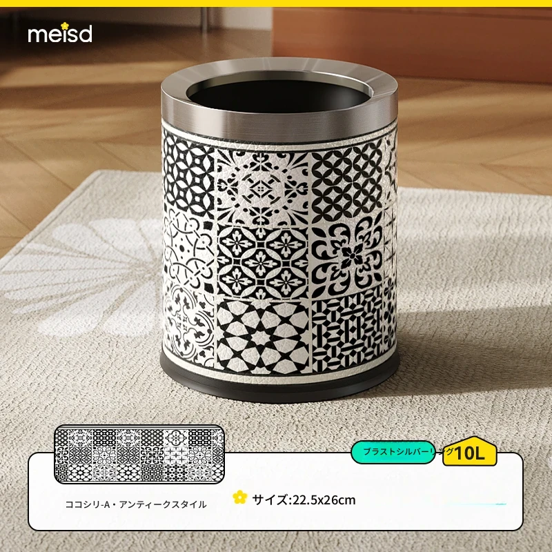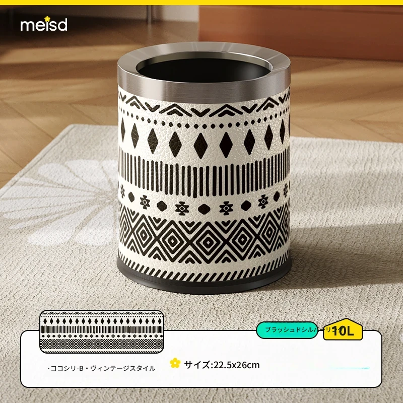 美世达ステンレス製ゴミ箱 - おしゃれでシンプルなデザイン、ダブルレイヤーの蓋付き大容量!リビングやトイレにぴったりの中古風スタイル。お部屋をすっきりと保ちながら、スタイリッシュな雰囲気を演出します。