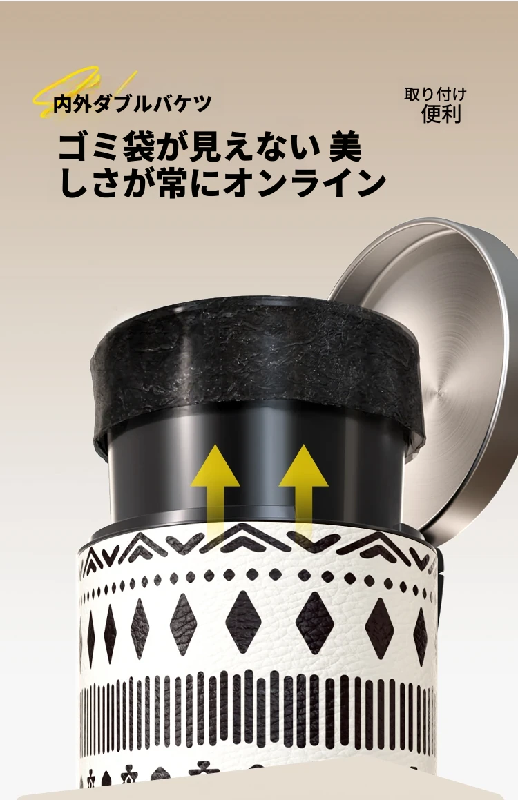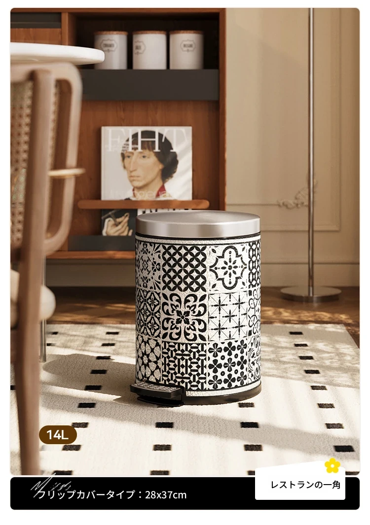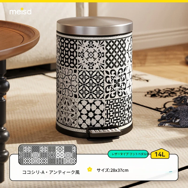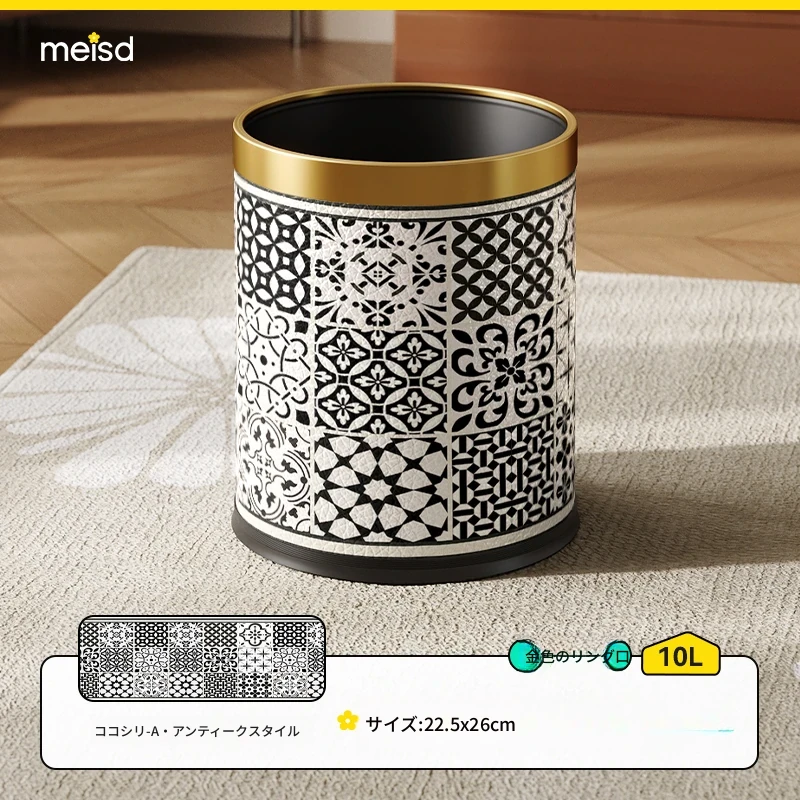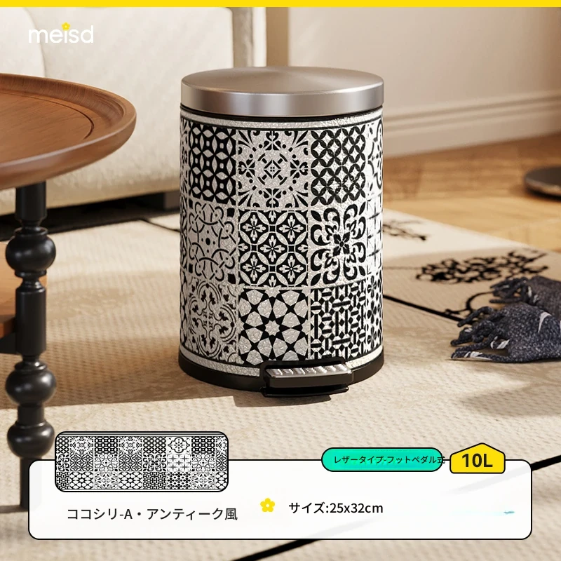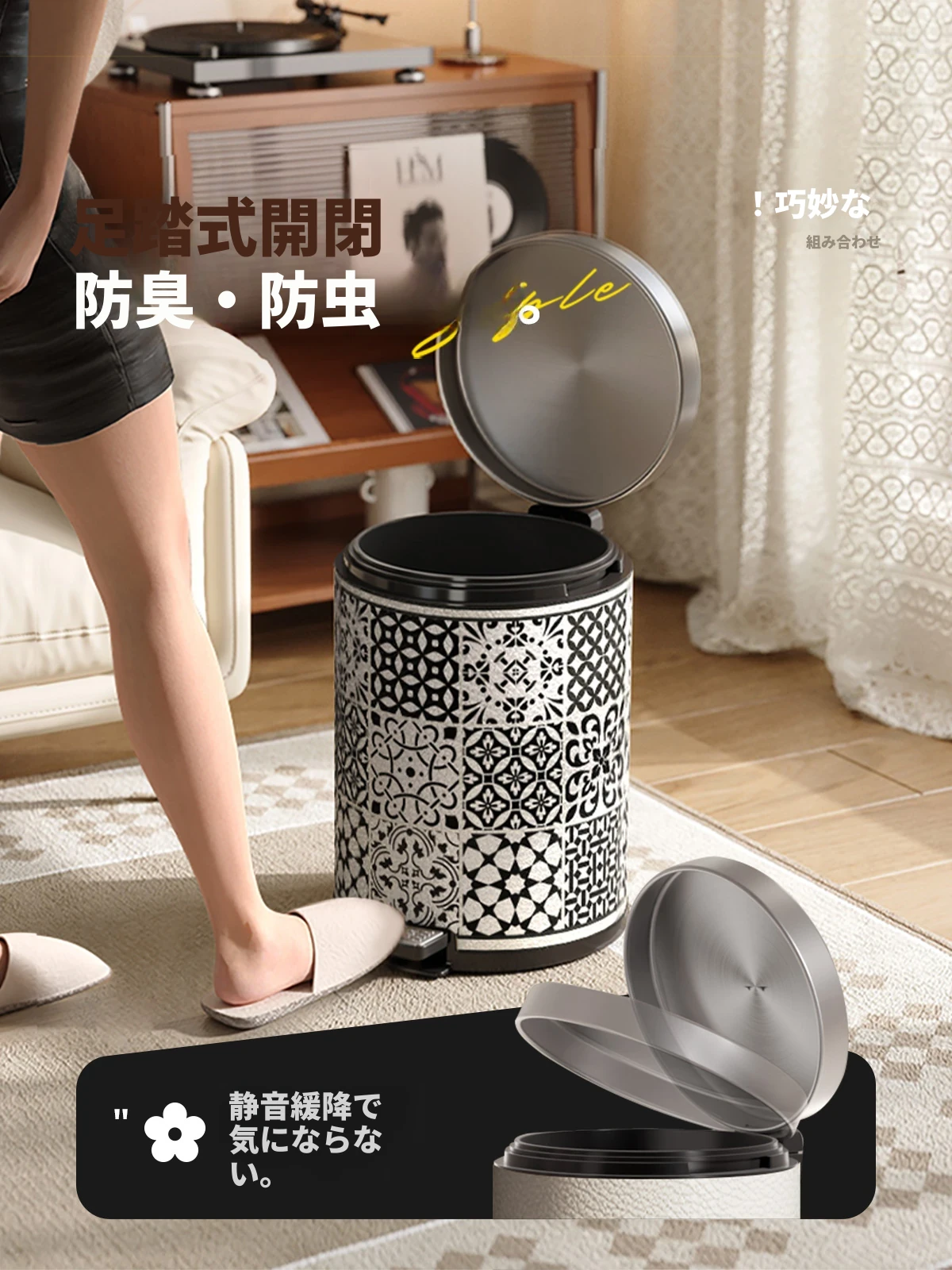 美世达ステンレス製ゴミ箱 - おしゃれでシンプルなデザイン、ダブルレイヤーの蓋付き大容量!リビングやトイレにぴったりの中古風スタイル。お部屋をすっきりと保ちながら、スタイリッシュな雰囲気を演出します。