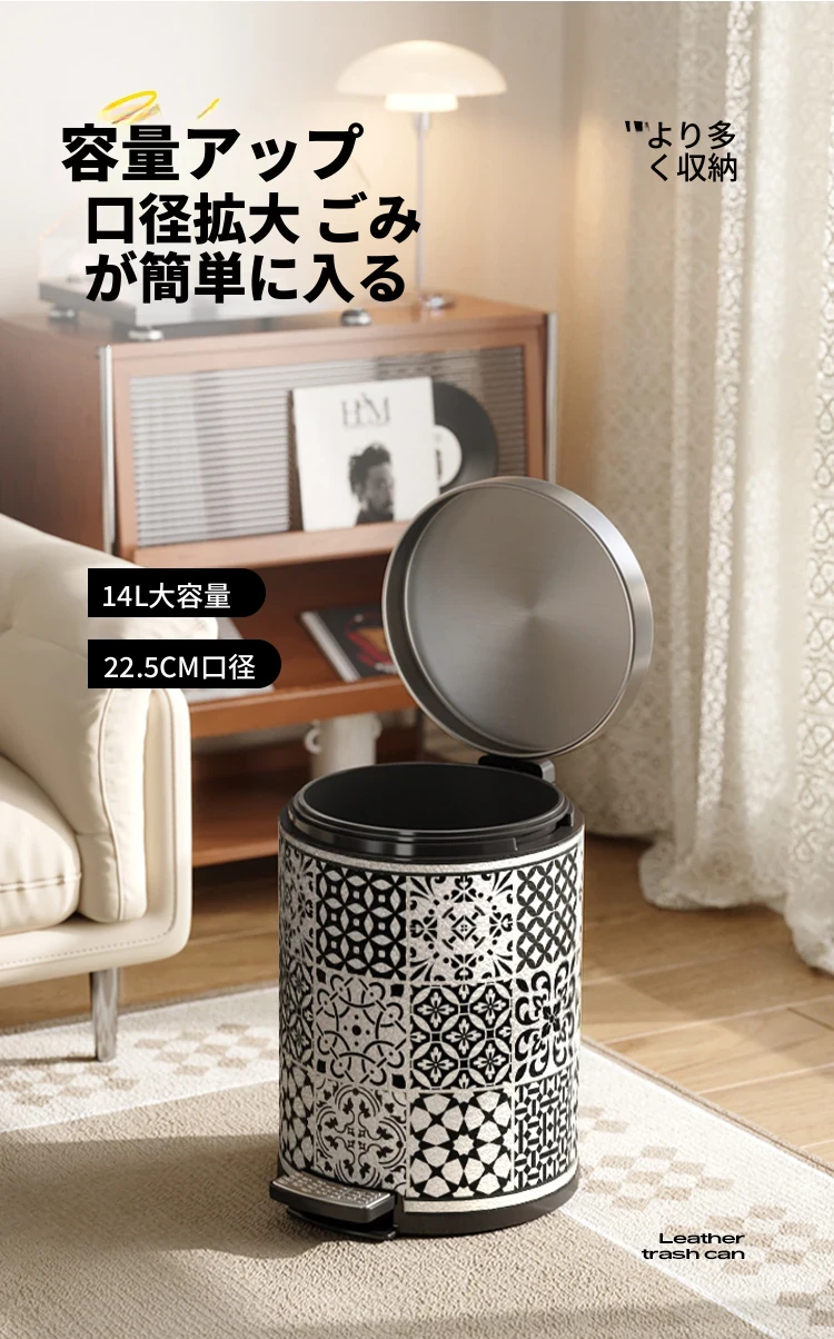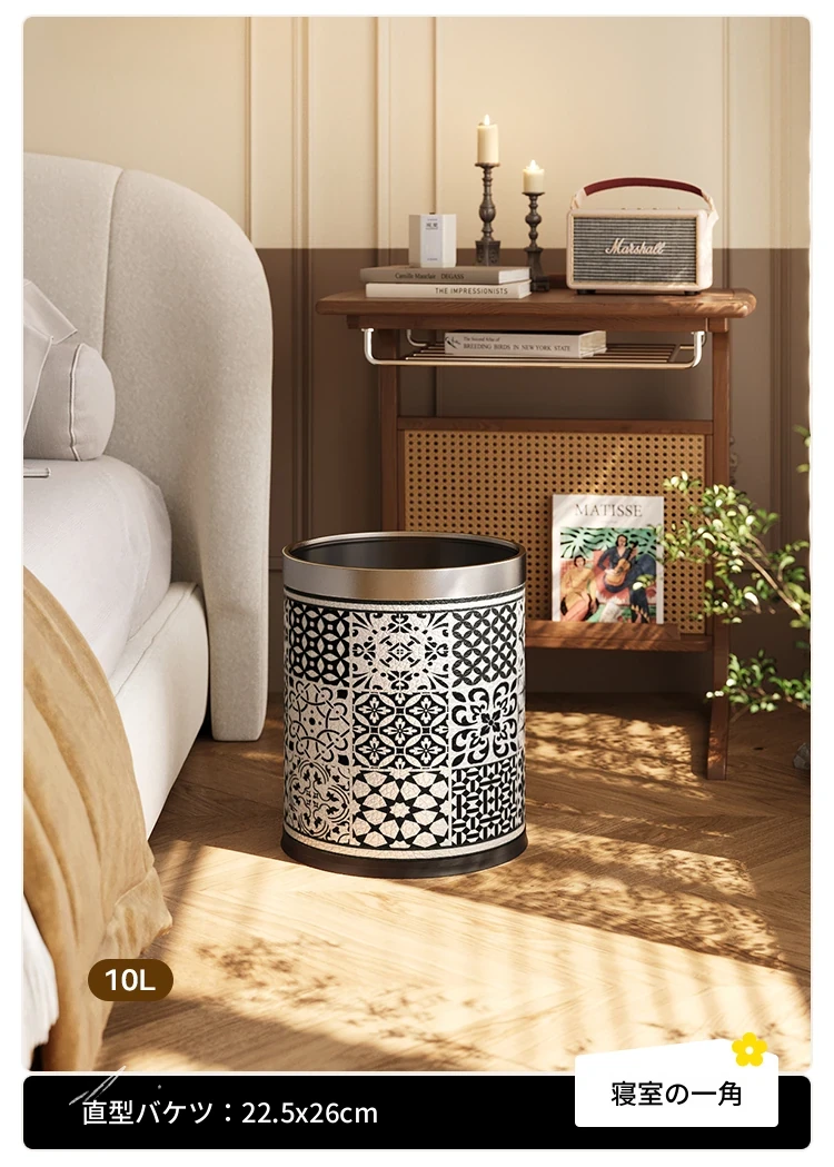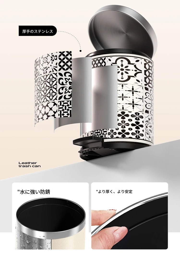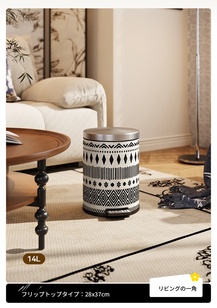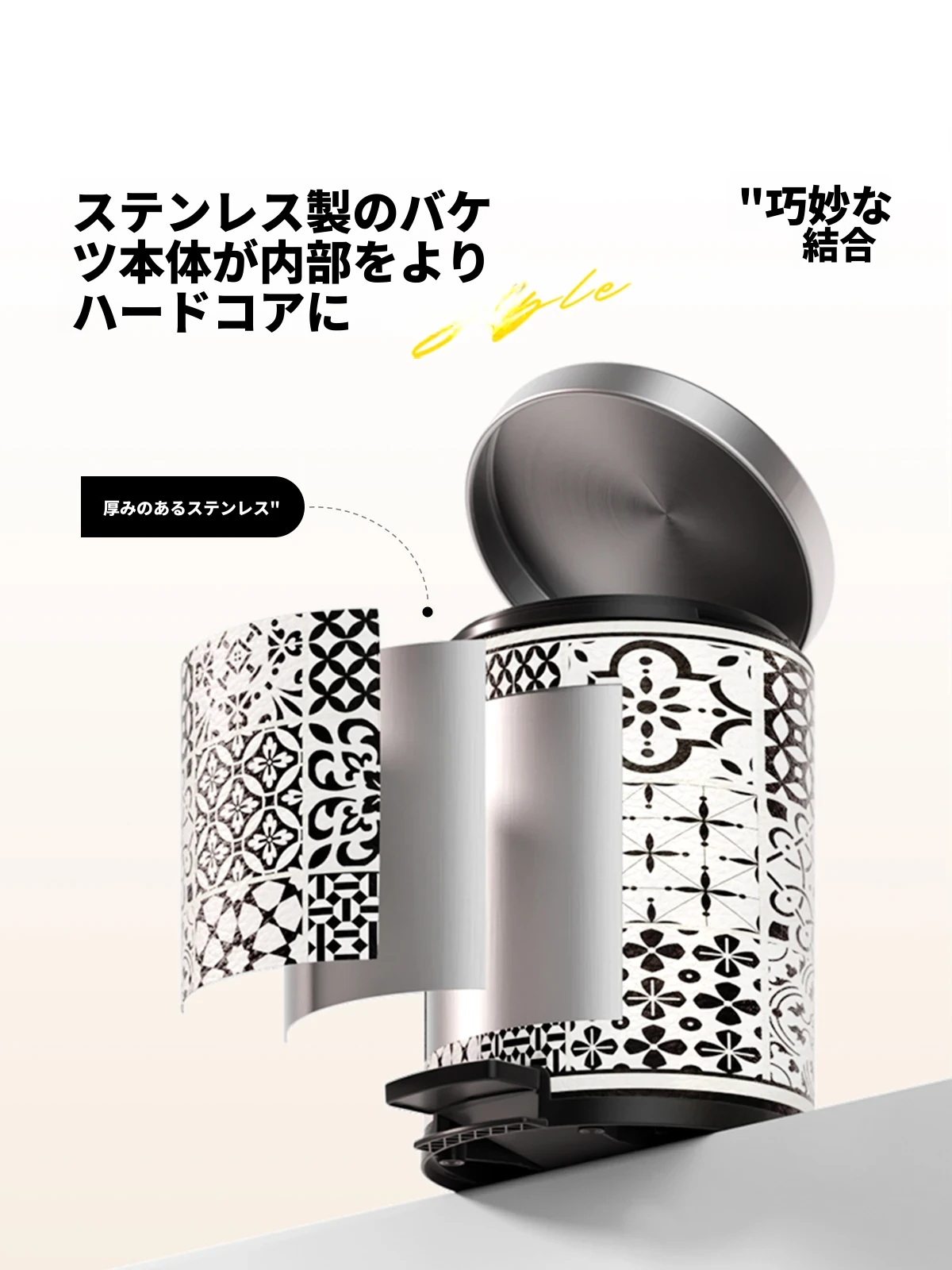 美世达ステンレス製ゴミ箱 - おしゃれでシンプルなデザイン、ダブルレイヤーの蓋付き大容量!リビングやトイレにぴったりの中古風スタイル。お部屋をすっきりと保ちながら、スタイリッシュな雰囲気を演出します。