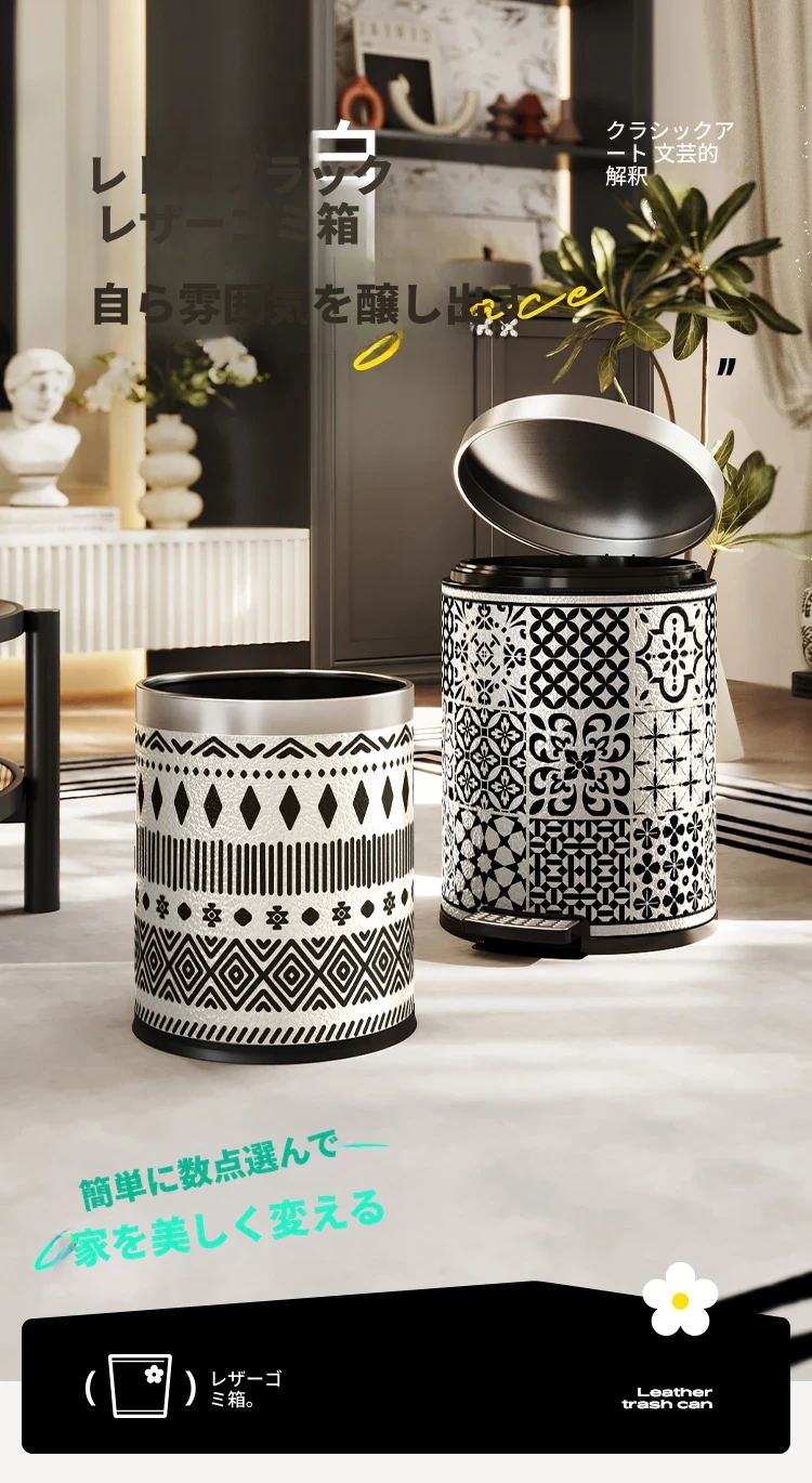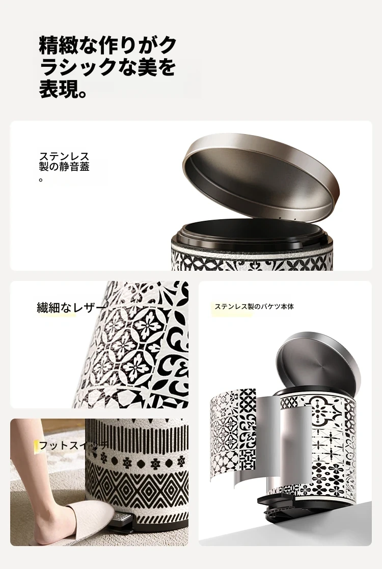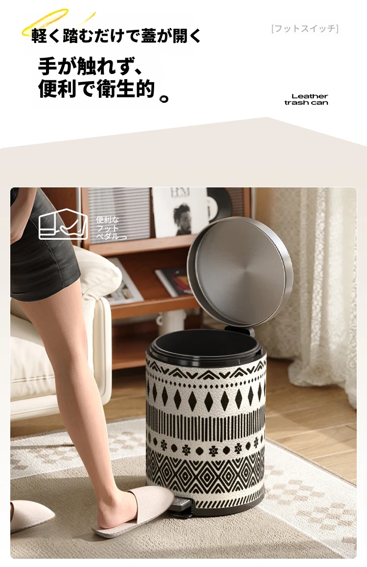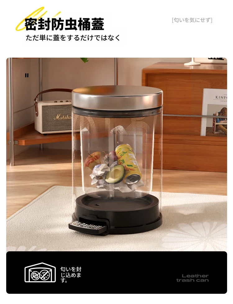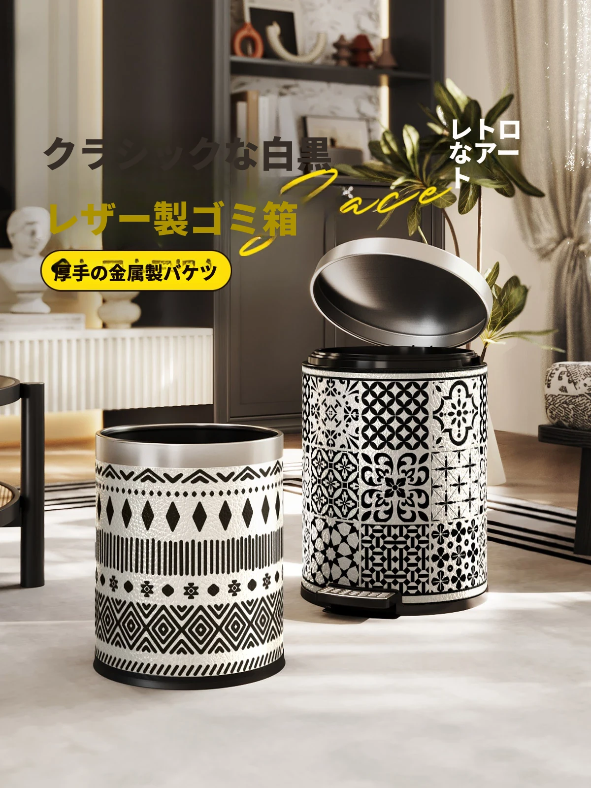 美世达ステンレス製ゴミ箱 - おしゃれでシンプルなデザイン、ダブルレイヤーの蓋付き大容量!リビングやトイレにぴったりの中古風スタイル。お部屋をすっきりと保ちながら、スタイリッシュな雰囲気を演出します。